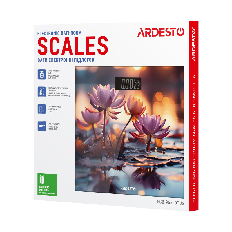 Ваги ARDESTO підлогові LOTUS, 150кг, AAAx2 в комплекті, скло, багатокольорові