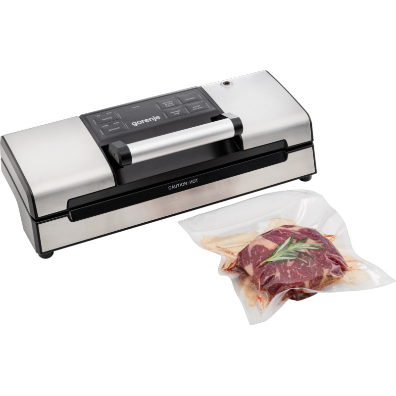 Вакууматор Gorenje VS120EPRO створений для тих, хто хоче зберегти продукти свіжими на тривалий час. Потужність у 120 Вт дозволяє швидко та ефективно вакуумувати різні харчі. З електронною системою керування ви легко налаштуєте процес вакуумування, а довжина поверхні запаювання у 30 см дає можливість використовувати пакети різних розмірів. Пристрій виконаний з нержавіючої сталі та чорного пластику, що гарантує довговічність і стильний зовнішній вигляд. У комплекті також є 10 пакетів для зручного початку користування.