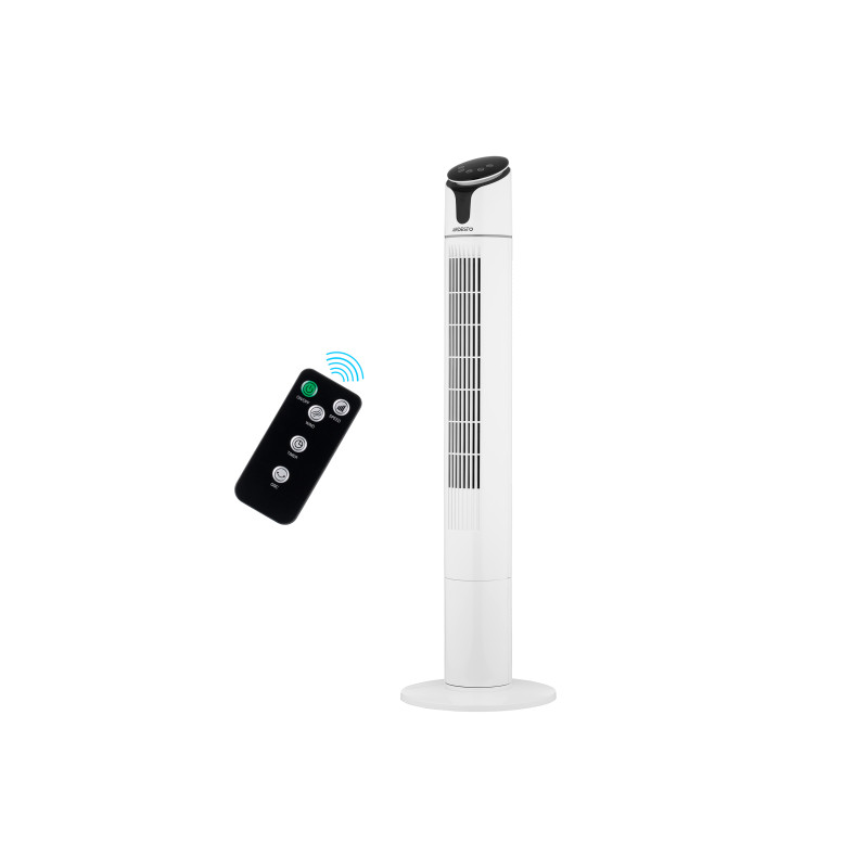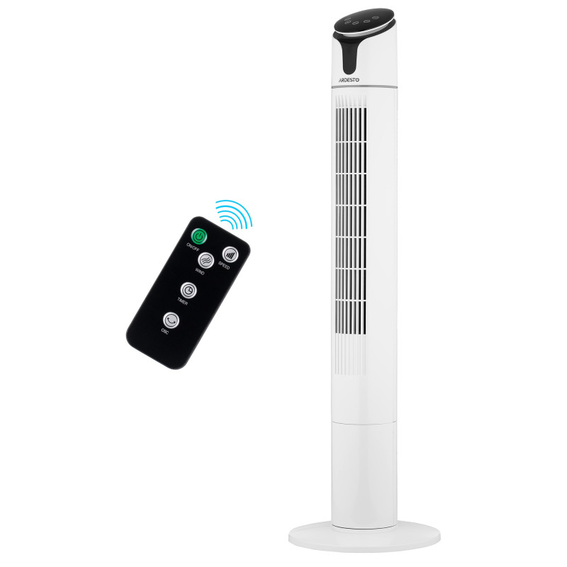 Підлоговий вентилятор колонного типу з потужністю 50 Вт, пультом дистанційного управління, таймером, датчиком температури та LED-дисплеєм. Вентилятор підтримує налаштування швидкості та обертання, а також режим морського бризу.