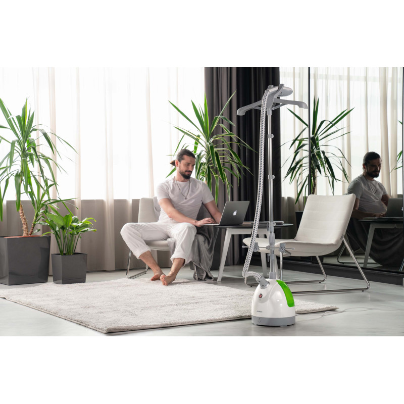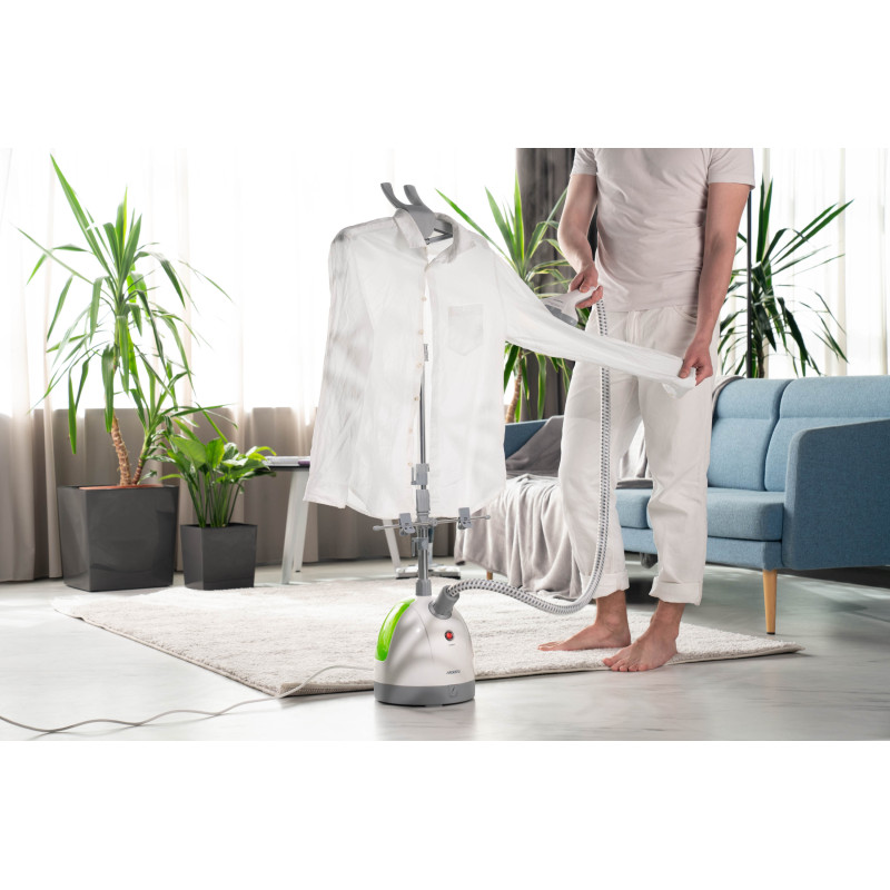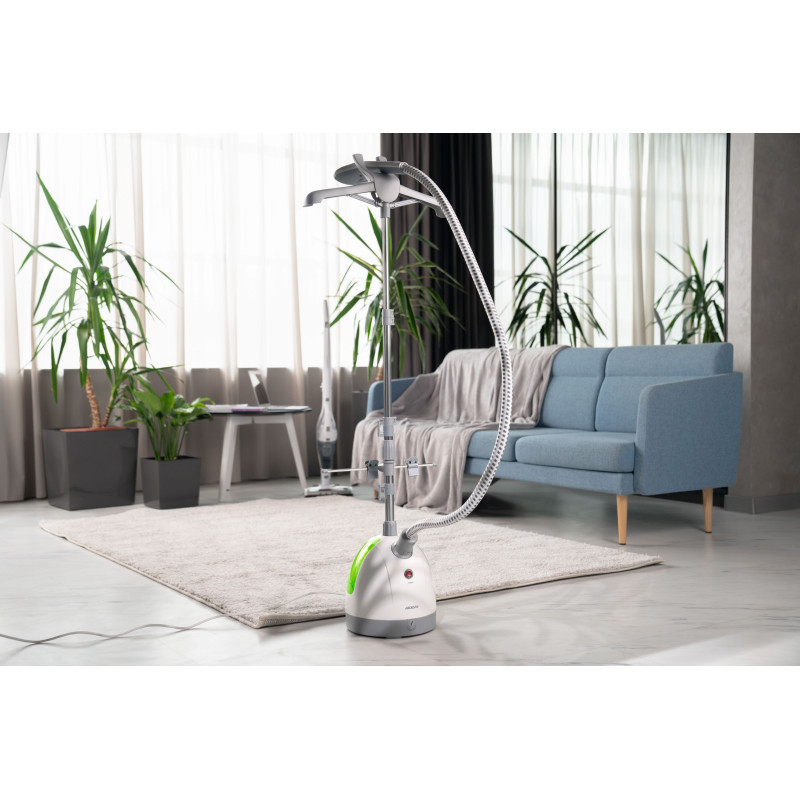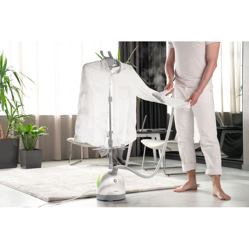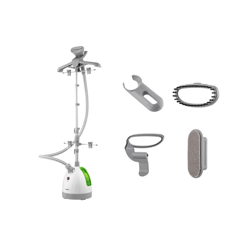 Вертикальний відпарювач ARDESTO потужністю 1 785 Вт допоможе випрасувати й освіжити речі. Для різних завдань у комплекті передбачено кілька насадок, зокрема: для вовни, окрема щітка для щільної шерсті, а також для догляду за текстилем. Зручність під час використання зумовлена можливістю регулювати висоту стійки (42-127 см) й оптимальною довжиною шланга (1,6 м).