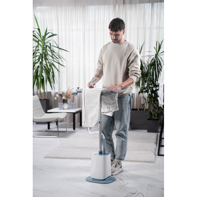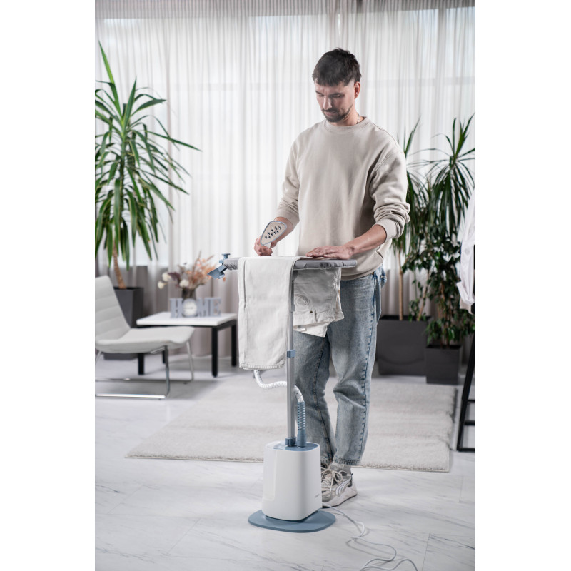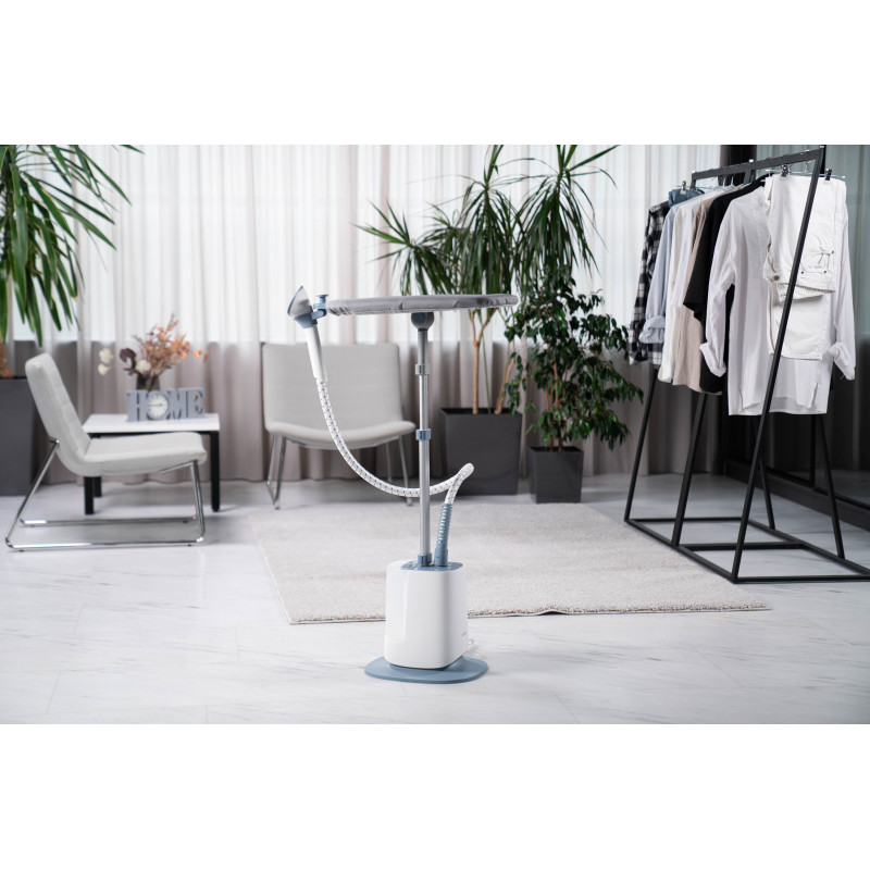 Вертикальний відпарювач ARDESTO IR-S26 є потужним пристроєм (1 785 Вт), який забезпечує тривалу автономну роботу. Передбачено великий резервуар для води ємністю 2 600 мл. Три режими подавання пари адаптовано до різних тканин, а подвійна стійка, регульована за висотою (51,5–135 см), і багатофункціональний вішак забезпечують зручність використання. Постійне подавання пари до 60 г/хв і готовність до роботи за 45 с роблять його швидким і ефективним. Стильний дизайн біло-сірого кольору доповнено ефективною функціональністю, як-от термостійкий шланг, вбудовані колеса для переміщення та щітка для тканини (в комплектованні). Відпарювач оснащено підошвою з нержавіючої сталі та захистом від перегрівання.