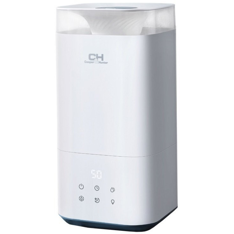 Зволожувач повітря Cooper&Hunter Grenada СH-2550T 5 л, 40 м2, 250 мл/г, ультразвуковий, верхня затока, гігростат, аромакапсула, підсвічування, білий