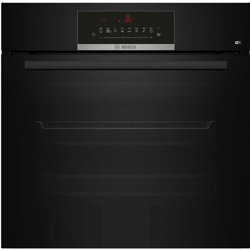 Електрична духова шафа Bosch з об'ємом 66 літрів і класом енергоефективності A. Її особливості включають зручний дисплей для легкого налаштування та технологію конвекції для рівномірного прогріву. Шафа представлена в елегантному чорному кольорі, надаючи їй сучасний вигляд і підкреслюючи естетику кухні. Це ідеальне рішення для тих, хто шукає ефективний та стильний кулінарний прилад.