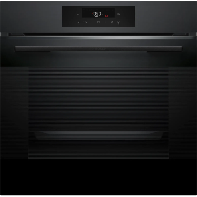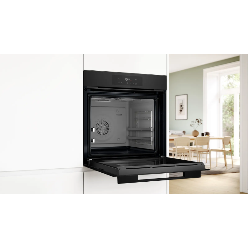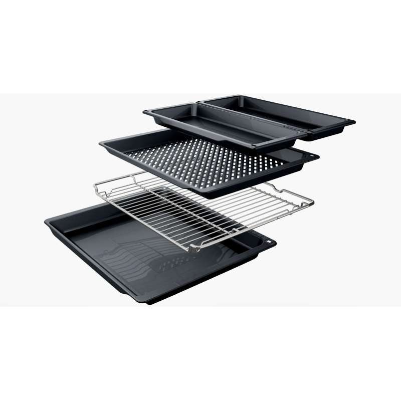 Вбудована електрична духова шафа Bosch XXL (76 л) з класом енергоефективності A, 8 режимами нагріву, функцією Air Fry та AutoPilot 30 для автоматичного приготування страв. Оснащена двома рівнями телескопічних направляючих, сенсорним управлінням, системою плавного відкриття/закриття дверцят SoftOpen/SoftClose та покриттям EcoClean Direct для легкого очищення.