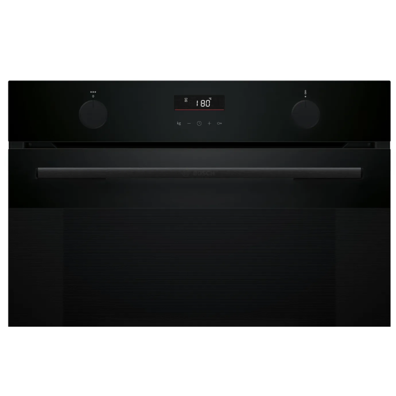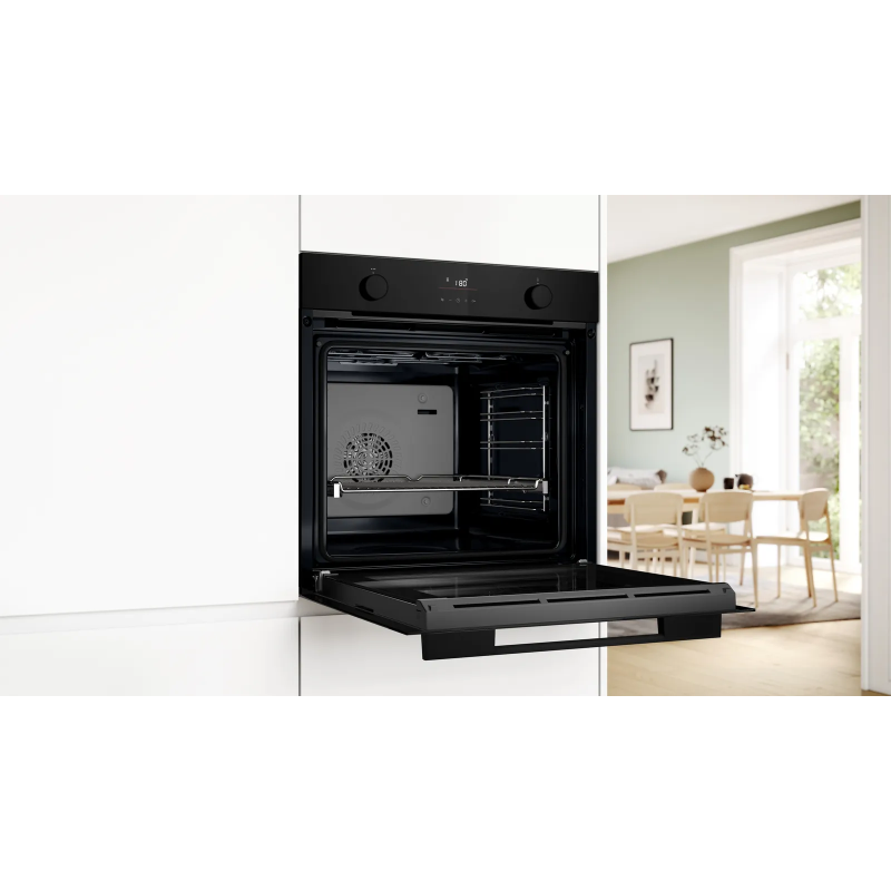 Bosch HUA736EA0T – вбудована електрична духова шафа XXL об’ємом 76 л з функцією додавання пари для хрусткої скоринки зовні та соковитої середини страви. Оснащена технологією 3D-гарячого повітря, системою AutoPilot 10, однорівневими телескопічними напрямними та покриттям EcoClean Direct для легкого очищення.