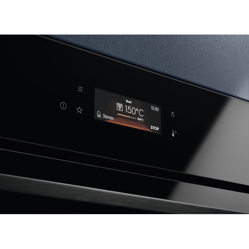 Електрична духова шафа Electrolux серії 800 MealAssist поєднує традиційне нагрівання та приготування з парою завдяки функції SteamPro. Сенсорний TFT-дисплей EXCite забезпечує зручне керування режимами та налаштуваннями. Функція Assisted Cooking пропонує рекомендовані параметри для різних страв і дозволяє коригувати їх вручну. Система плавного зачинення дверей підвищує комфорт щоденного використання.