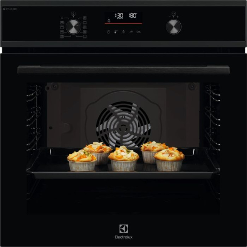 Духова шафа Electrolux електрична, 72л, A+, пара, дисплей, конвекція, телескопічні напрямні, чорний