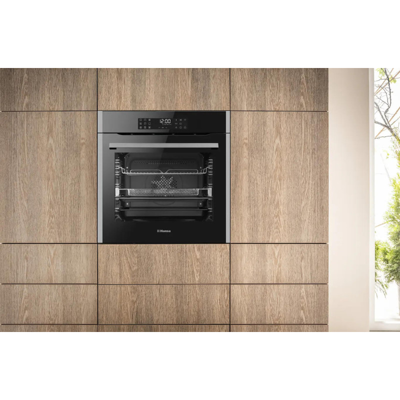 Hansa BOES69871 – це електрична духова шафа на 77 літрів із класом енергоефективності A+, що допомагає знизити споживання електроенергії. Завдяки конвекційній системі тепло рівномірно розподіляється, забезпечуючи відмінне випікання та запікання. Електронний дисплей дозволяє точно контролювати температуру та час приготування, а різноманітні функції роблять використання ще зручнішим.