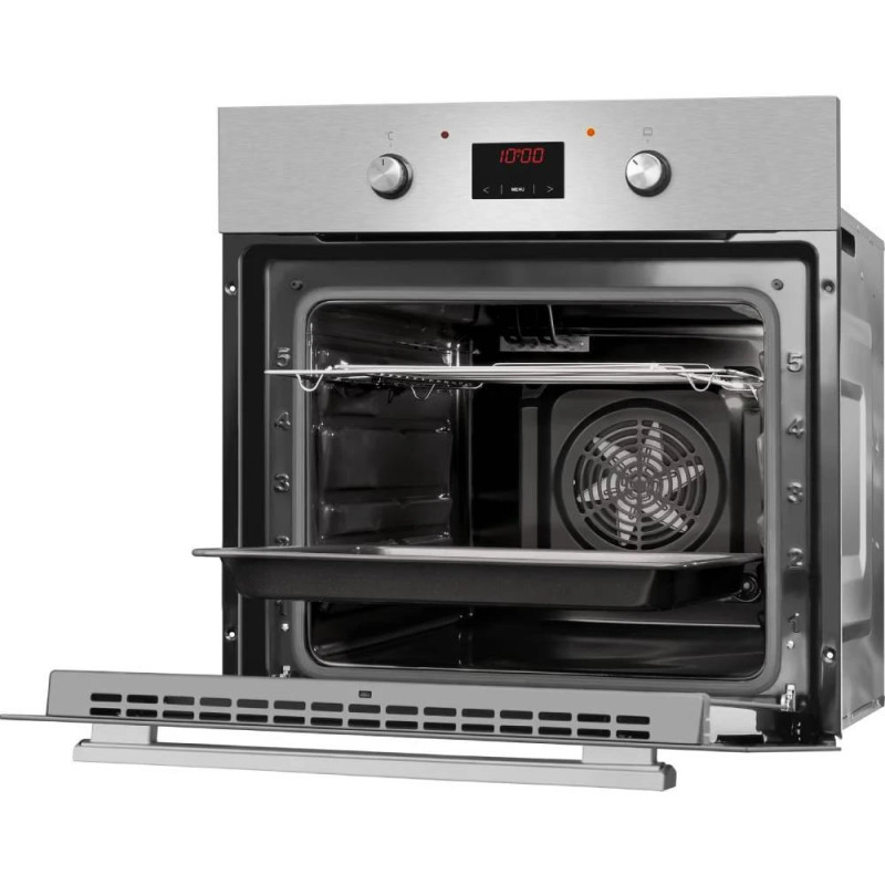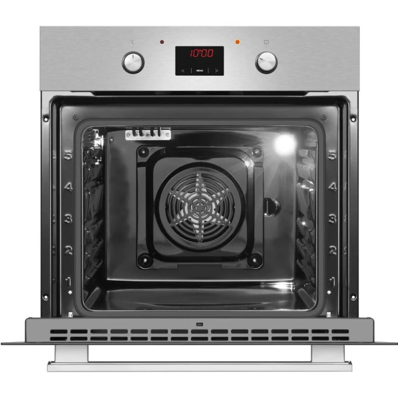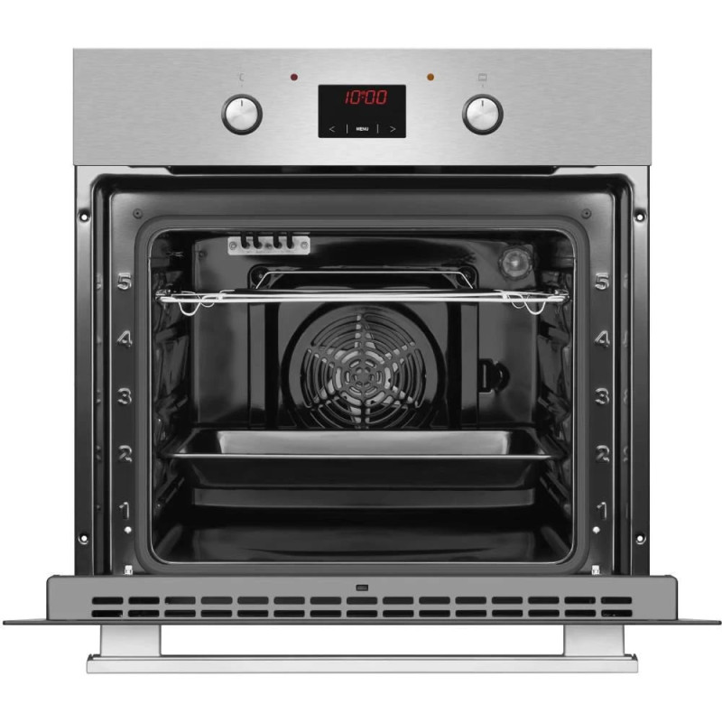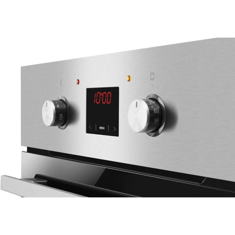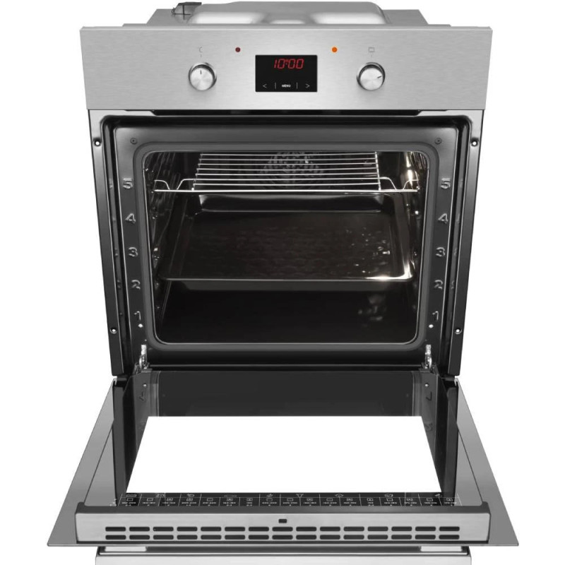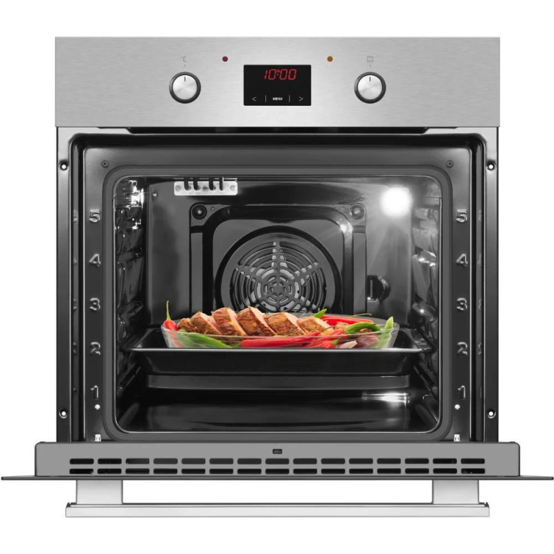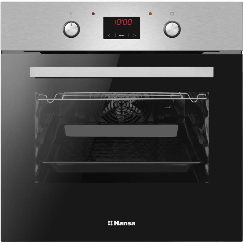 Електрична духова шафа Hansa BOEI68461 об’ємом 62 л, класу A, з 8 режимами приготування та грилем 2000 Вт. Має парове очищення, сенсорне та механічне керування, LED-дисплей і подвійне скло дверцят. Виконана з нержавіючої сталі, нагрівається до 250°C.