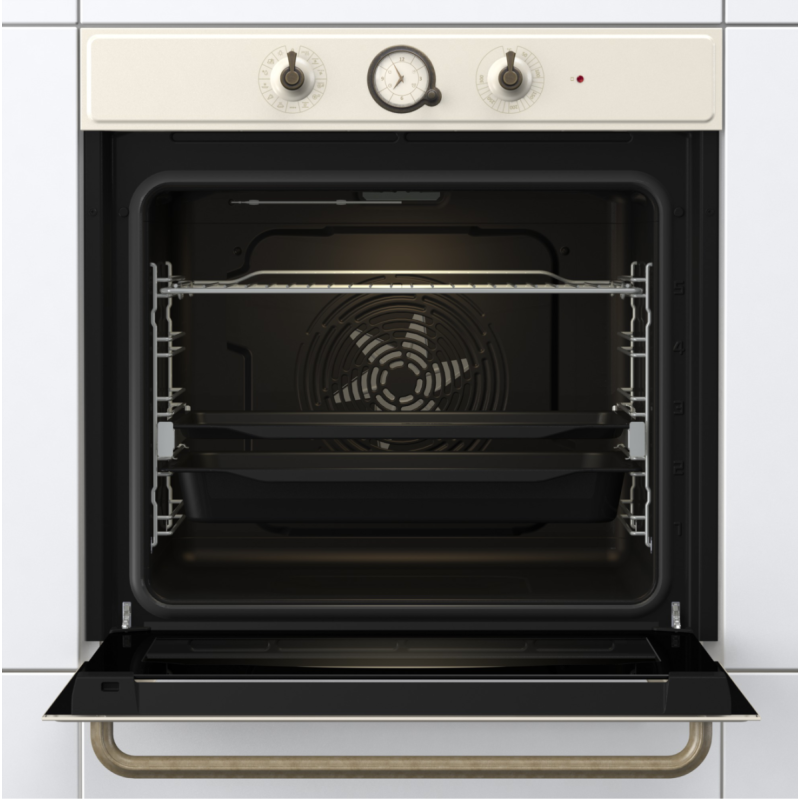 Духовки Gorenje відомі своєю інноваційною формою внутрішньої камери, яка стала їхньою візитною карткою. Східчаста форма HomeMade створена подібно до традиційної дров'яної печі та забезпечує ефективнішу циркуляцію повітря в порівнянні з іншими продуктами на ринку. Тепер ми оновили форму HomeMade, і циркуляція повітря додатково покращилася завдяки новій конструкції нагрівальних елементів і новому розташуванню отворів подачі повітря. Це забезпечує однакову температуру по всьому простору духовки. Ваші страви більше не будуть підгорілими з одного боку та недоготовленими з іншого.