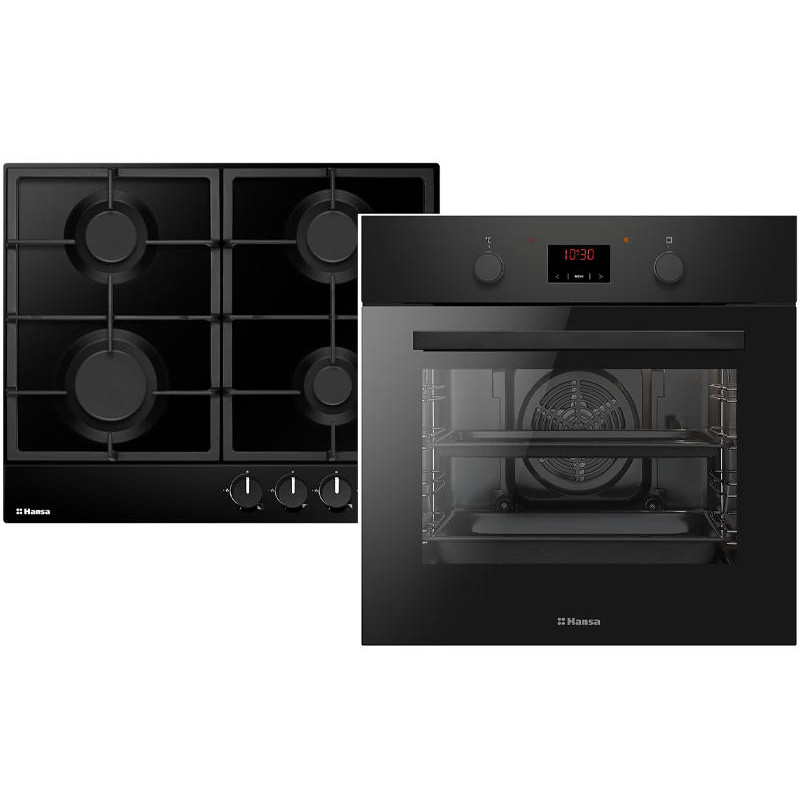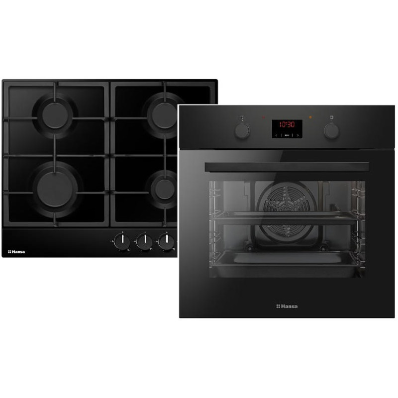 Комплект Hansa FCGS68326 включає електричну духовку об’ємом 65 л із 8 режимами приготування, паровим очищенням, грилем, конвекцією та сенсорним керуванням у поєднанні з газовою варильною поверхнею з чавунними решітками. Духовка оснащена трьома шарами скла, внутрішнім рефлексним склом, галогенним підсвічуванням та знімними дверцятами. Газова панель має 4 конфорки італійського виробництва Somipress.