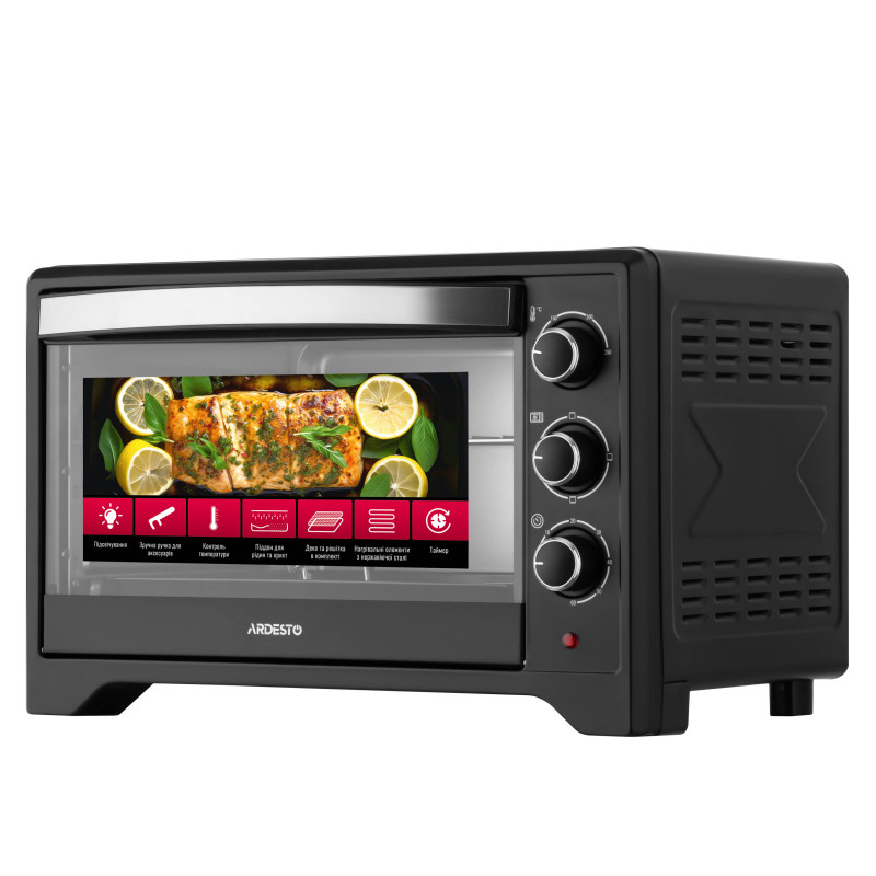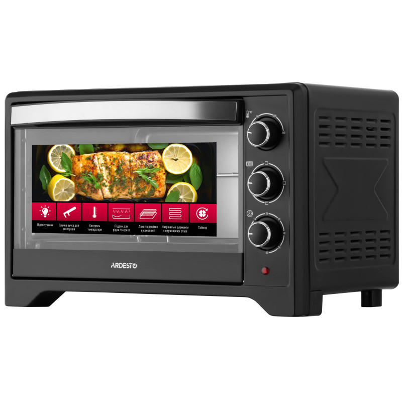 Електрична піч ARDESTO – це втілення компактності та функціональності. Об’єм 33 л дає змогу готувати не лише повсякденні страви, а й експериментувати з випічкою і запіканням. Лаконічний чорний корпус органічно пасує до різних кухонних інтер’єрів, додаючи стильного акценту.