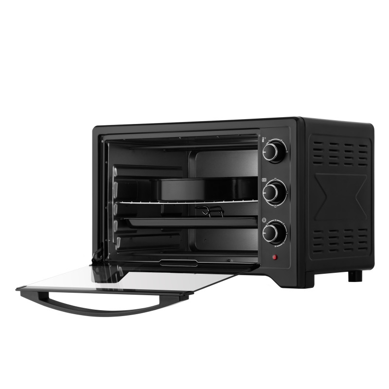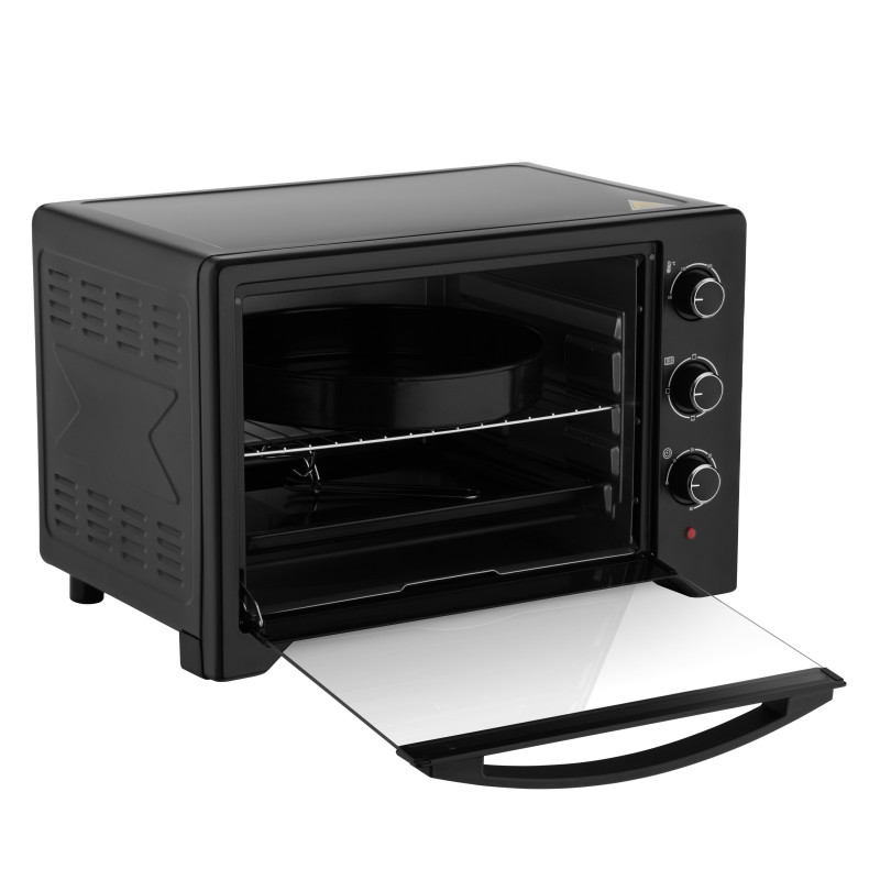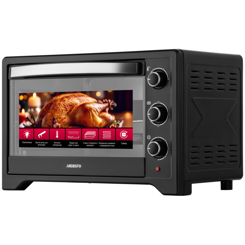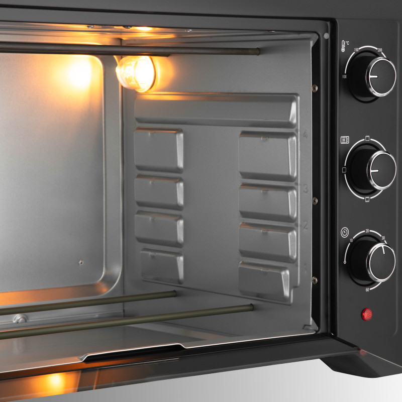 Завдяки об’єму 45 л і потужності 2 015 Вт містка модель MO-T45B легко впорається з великими порціями чи кількома стравами одночасно. Температурний діапазон 100–250 °C і три режими нагрівання дають змогу готувати різноманітні страви – від духмяної випічки до просмаженого м’яса й овочів. Таймер 60 хв та індикація завершення процесу додають зручності, а внутрішнє освітлення дає змогу контролювати приготування, не відчиняючи дверцята. Конструкцію продумано до дрібниць: дверцята із загартованого скла, нагрівальні елементи з нержавіючої сталі, три рівні для дек, нековзні ніжки для стійкості. У комплекті – прямокутне та кругле дека, решітка для гриля, піддон для крихт і рідин, а також руків’я для зручного виймання гарячих аксесуарів.