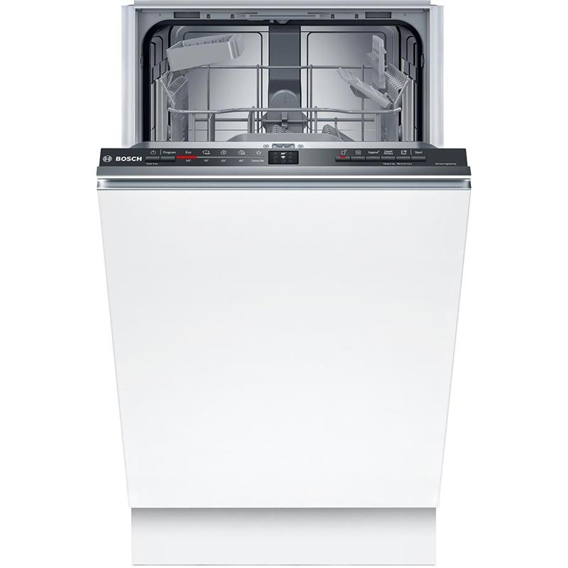 Вбудована посудомийна машина Bosch Serie 2 SPV2IKX01K, шириною 45 см, на 9 комплектів, енергоефективність класу F, низький рівень шуму — 48 дБ(A), із захистом AquaStop, 5 програмами мийки та технологіями SpeedPerfect і HygienePlus.