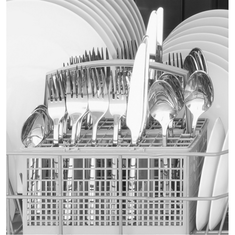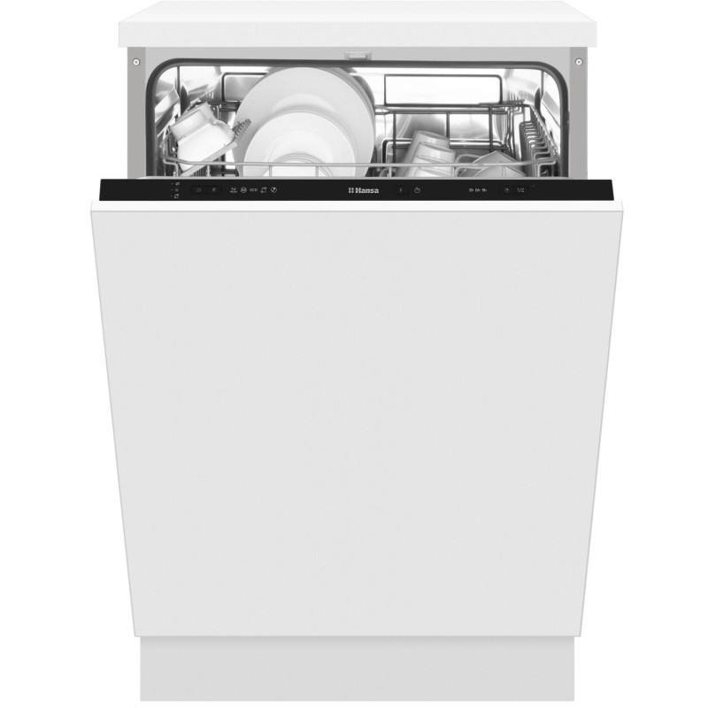Вбудована посудомийна машина Hansa ZIM635PH на 12 комплектів має 5 програм, функції половинного завантаження, відкладеного старту та додаткового сушіння. Рівень шуму 49 дБ, споживання води лише 11 л за цикл. Клас енергоефективності A++ забезпечує ощадливе використання ресурсів.