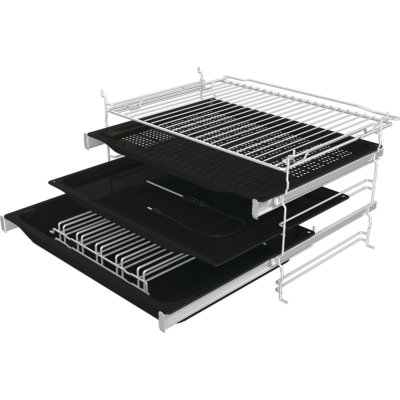 Відкривайте й закривайте дверцята духової шафи практично без зусиль і шуму. Легкий доторк — це все, що потрібно, щоб дверцята повністю закрилися без жодного звуку.Одночасне приготування. Готуйте на кількох рівнях одночасно