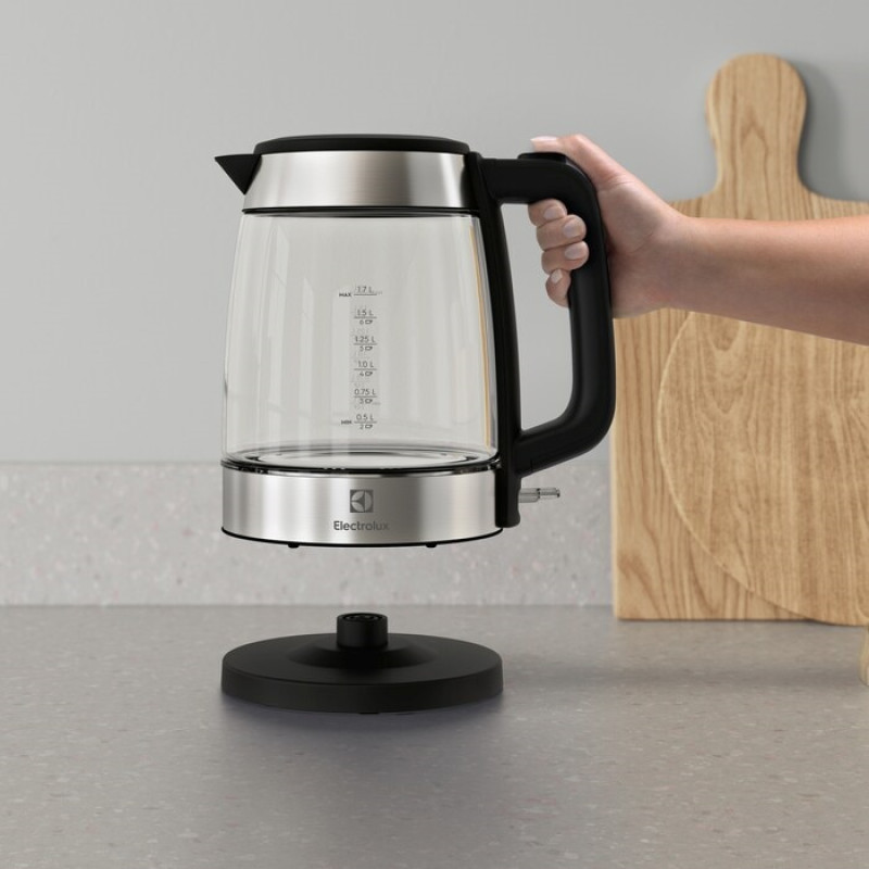 Цей чудовий чайник зі скла та нержавіючої сталі чудово виглядатиме на вашій кухні. Міцна скляна ємність об'ємом 1,7 л забезпечує повну видимість, тому ви можете нагріти воду як забажаєте.