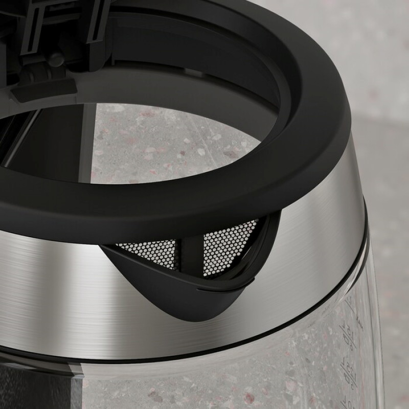 Велика кришка забезпечує легкий доступ всередину чайника, а дизайн зі скла дозволяє точно бачити, коли ваш чайник потребує чищення. Нагрівальний елемент чайника захований усередині основи, тому ваш чайник буде менш схильний до утворення іржі та накипу.