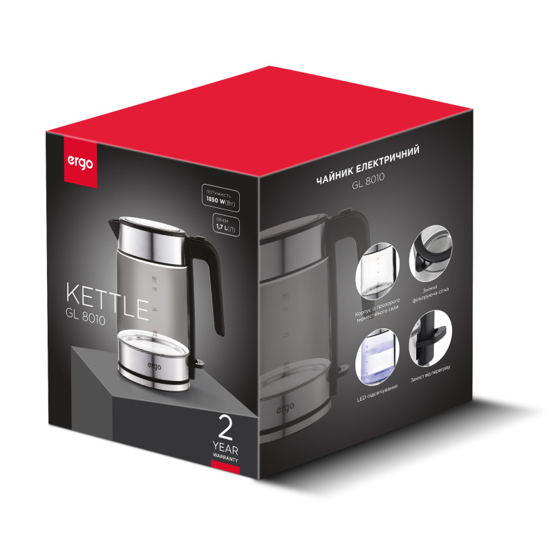 | Комплектація | Чайник, підставка з кабелем, інструкція, гарантійний талон |