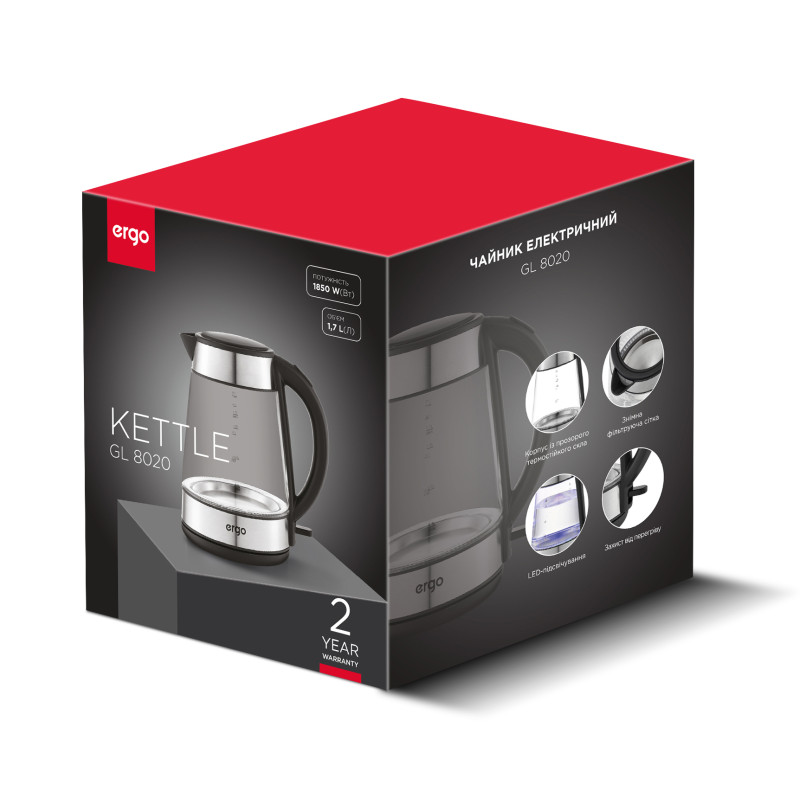 Міцний та екологічний скляний корпус цього чайника естетичний на вигляд і простий у догляді. Прозорий корпус дозволяє візуально контролювати процес закипання води, а світлодіодне підсвічування робить це приємнішим.