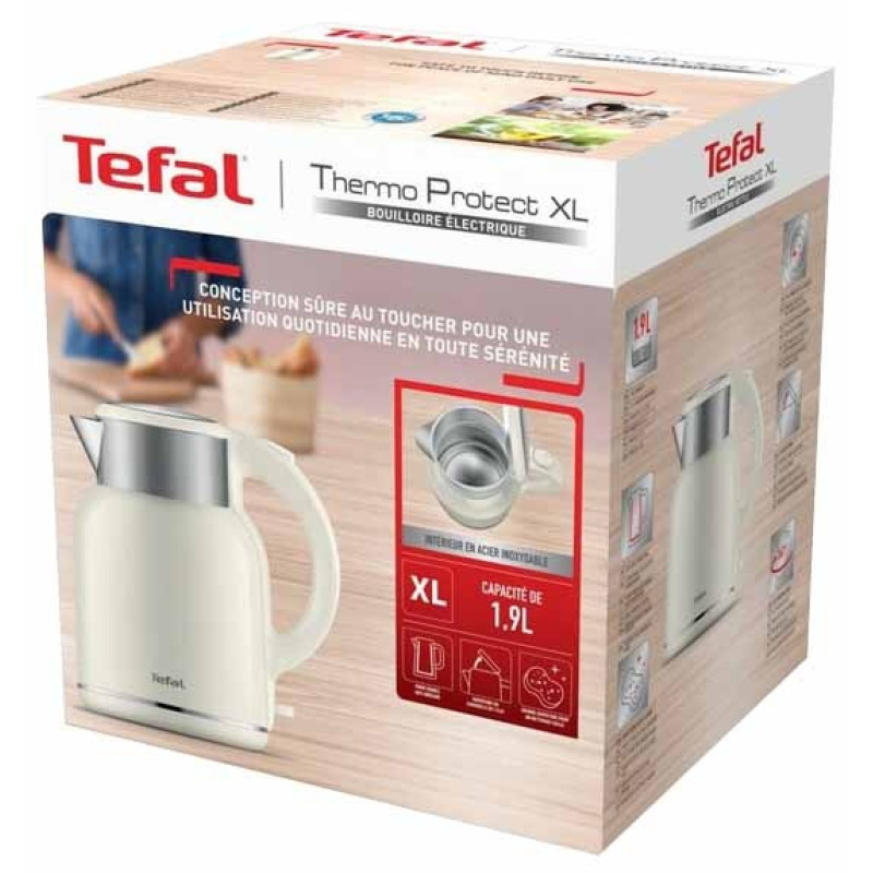 Електрочайник Tefal Thermo Protect XL KO190AE0 ідеально підходить для всієї родини. Подвійні стінки зберігають воду всередині гарячою, а зовнішню поверхню ― прохолодною, тобто до нього завжди безпечно торкатися! Відкрийте для себе потужний чайник із великою місткістю й сучасним дизайном, в якому гармонійно поєднується все: легкість догляду, ергономічна форма носика, що гарантує наливання без крапель, безпека та вишуканий стиль.