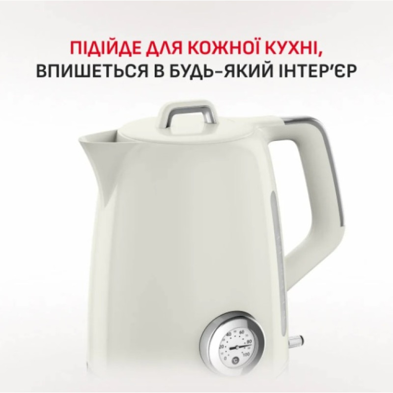 Оснащений вбудованим термометром: нагрівайте воду до ідеальної температури відповідно до ваших потреб — для досконало завареної чашки чаю.
