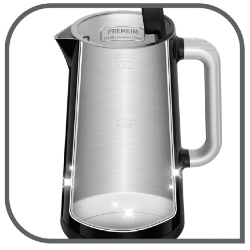 Конструкція з подвійними стінками підтримує температуру всередині й одночасно робить зовнішню стінку не дуже гарячою для безпечного дотику. Додаткові функції для вашої зручності: функція підтримки температури протягом 30 хвилин, автоматичне відкриття кришки для зручного наповнення, обертання на базі на 360 °, автоматичне вимкнення для безтурботного використання. Завдяки великому об'єму 1,7 л можна зробити до 7 чашок за раз. Знімний фільтр проти накипу для легкого очищення. Tefal - сучасний і швидкий електричний чайник.