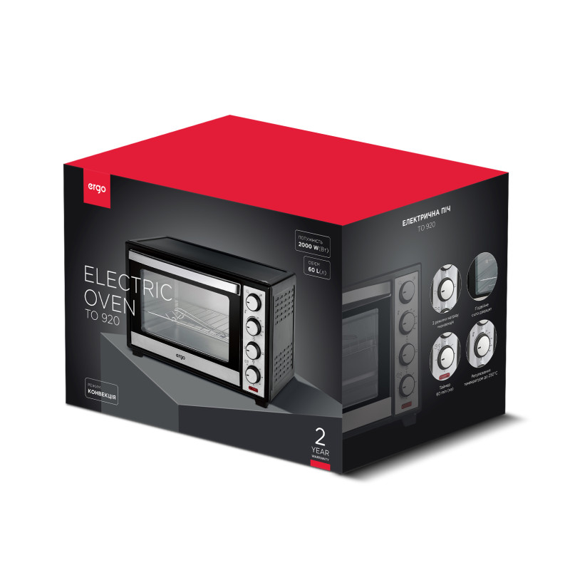 Модель ERGO TO 920 – це повноцінна електрична піч, яка має всі переваги стаціонарної духовки, але разом із тим дає змогу використовувати її в тому місці і в той час, де і коли це потрібно, наприклад, улітку на дачі. Дана піч має корисний об’єм 60 літрів і оснащується чотирма тенами сумарною потужністю 2000 Вт, які розігрівають камеру печі до 250 градусів.