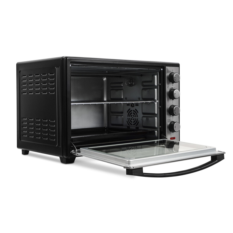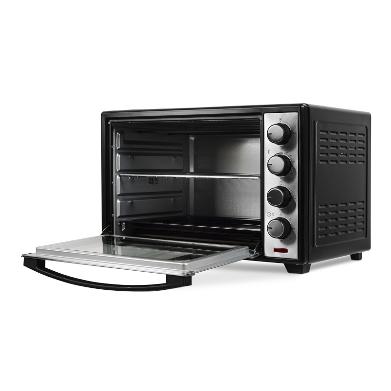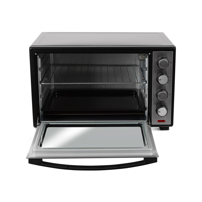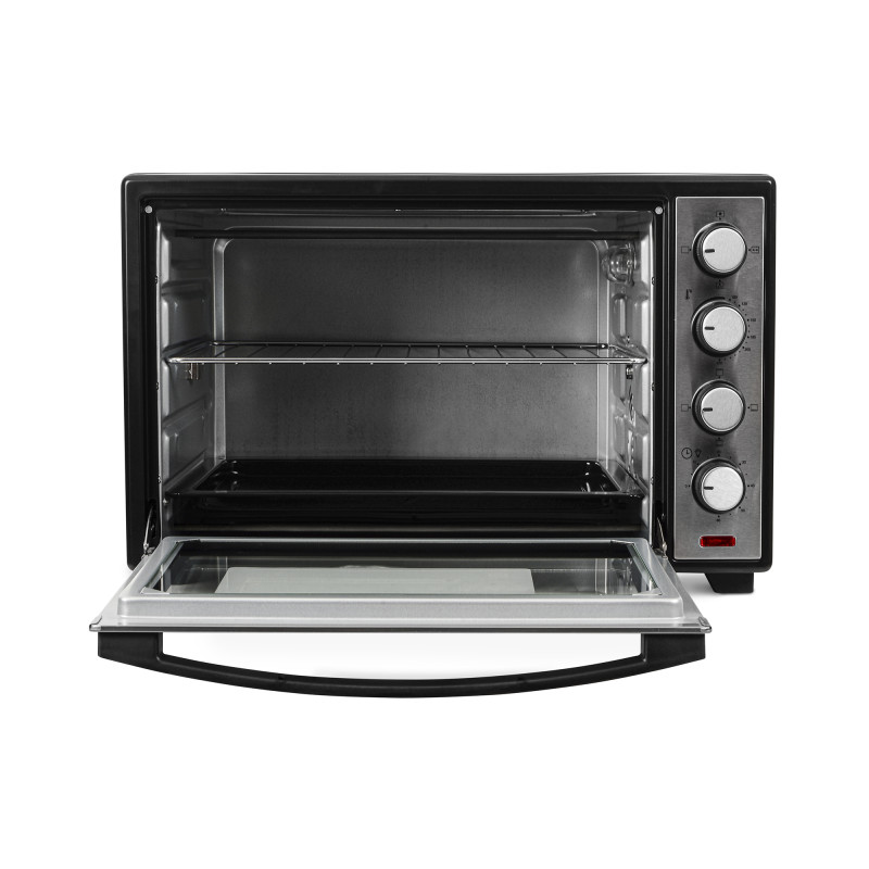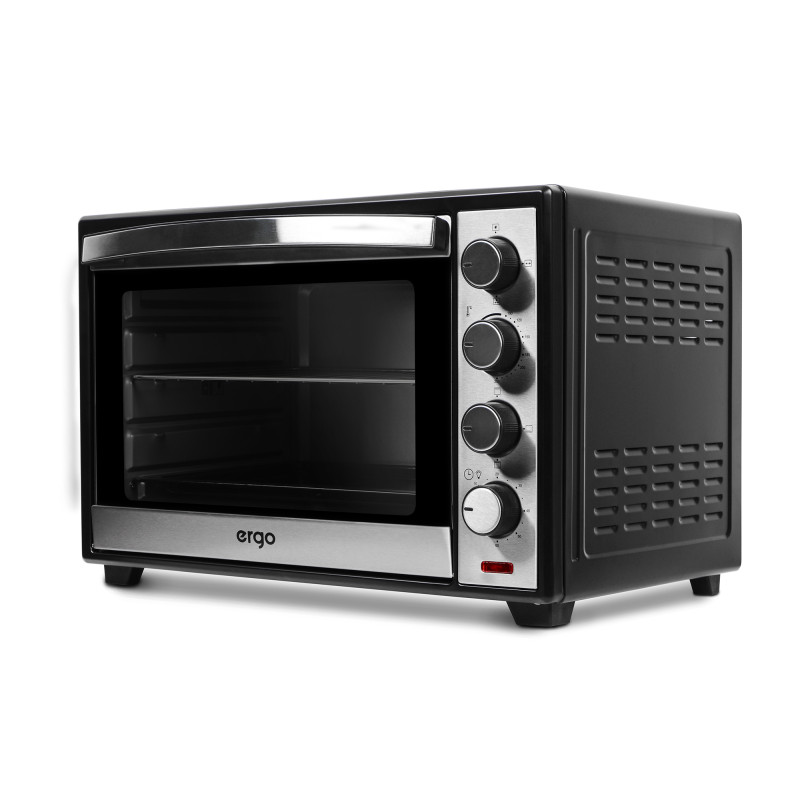 ERGO TO 930 – компактна, функціональна та стильна модель, яка завдяки вдалому поєднанню чорного кольору й матової сталі прикрасить будь-який кухонний інтер’єр. Внутрішній простір, що має об’єм 38 літрів, поділено на декілька рівнів для зручності в користуванні й можливості готувати більшу кількість продуктів одночасно. Чотири ТЕНи дають максимальну потужність 1600 Вт, нагріваючи піч до 250°С.