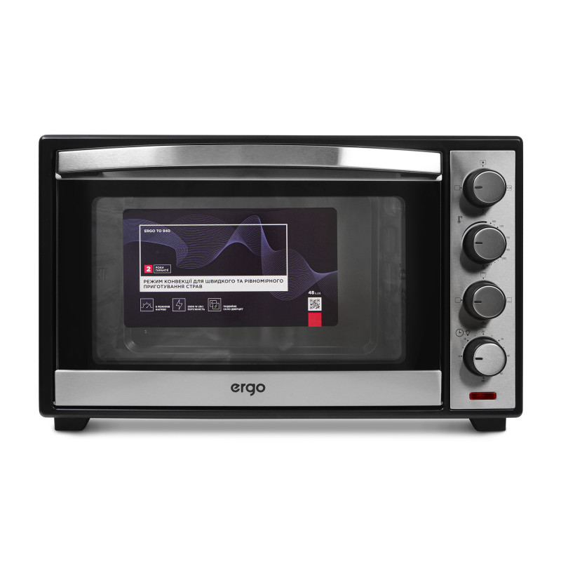 Модель ERGO TO 940 – це настільна піч із чотирма електричними нагрівальними елементами потужністю до 2000 Вт, регулюванням температури до 250°С і з просторим внутрішнім об'ємом 48 літрів, чого достатньо для приготування найрізноманітніших страв.