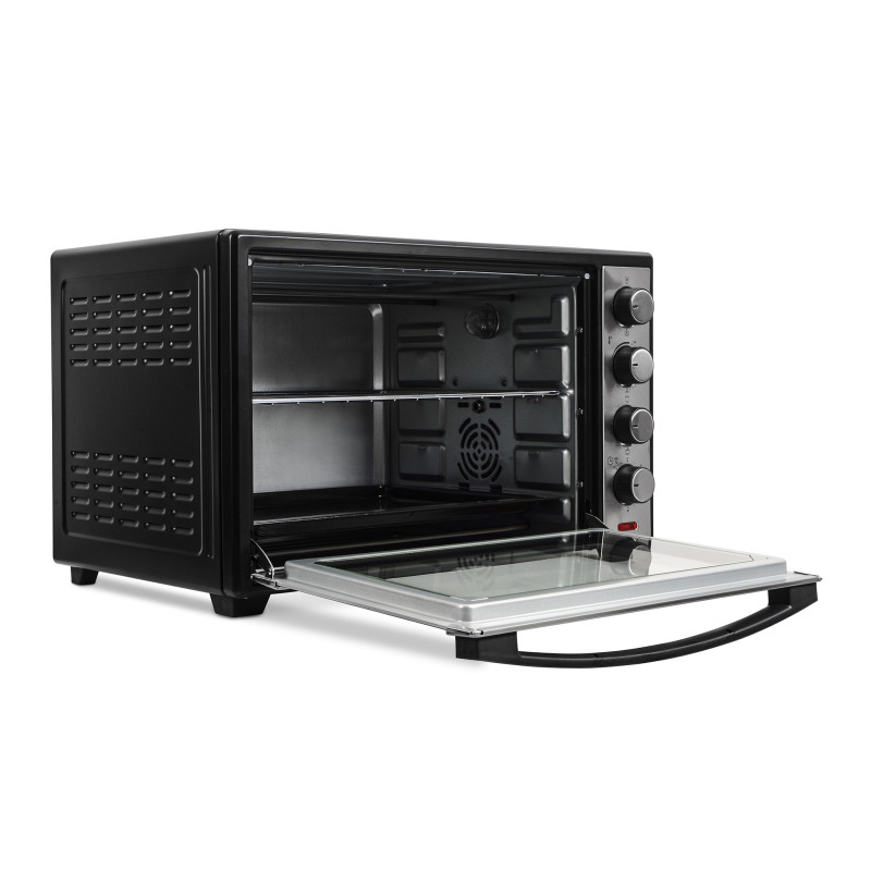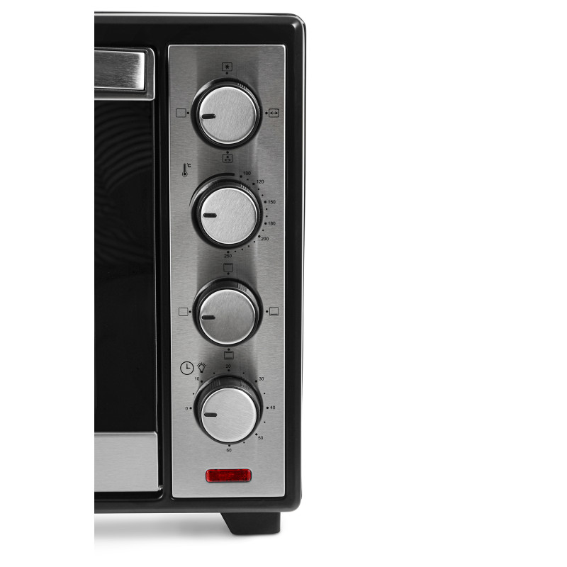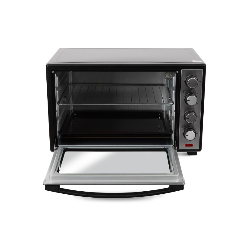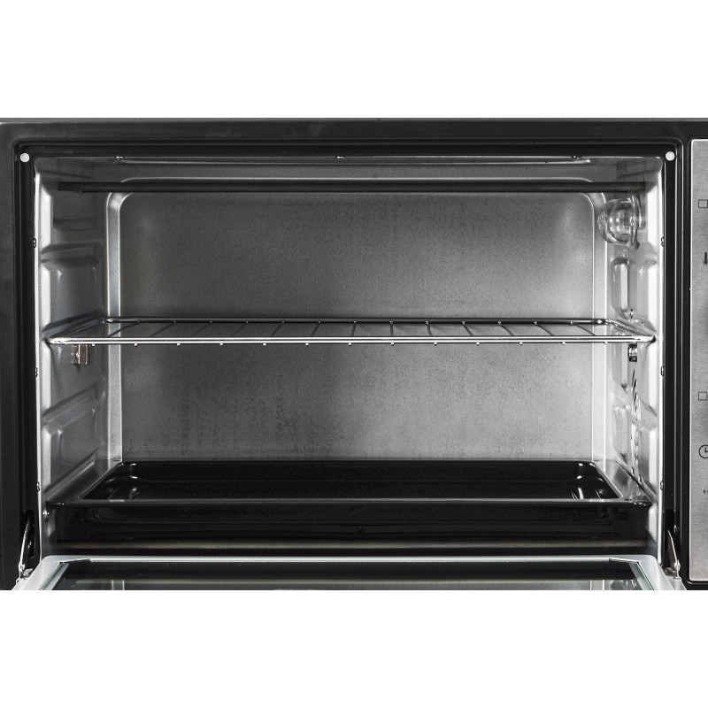 Ця електропіч оснащена функцією приготування на грилі з вертелем, що дозволяє запікати смачне, соковите та рівномірно пропечене м’ясо із хрусткою скоринкою. Вибір режиму роботи з увімкненням верхнього, нижнього або всіх нагрівальних елементів одночасно дає змогу регулювати силу та напрямок розповсюдження тепла залежно від задачі, а режим конвекції незамінний під час приготування делікатних страв, як-от різноманітна випічка, риба, овочі тощо.