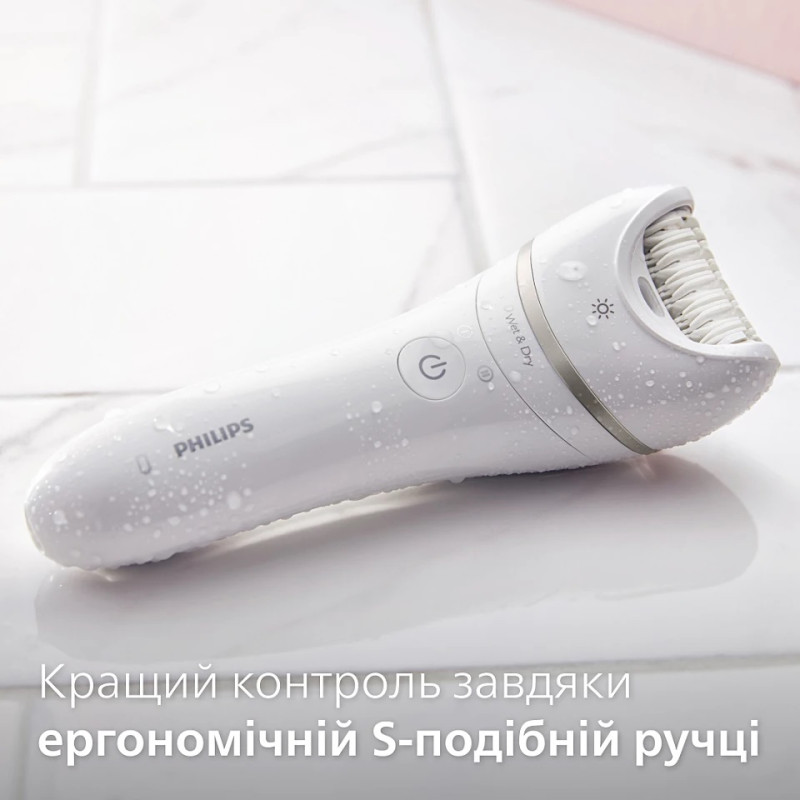 Завдяки ергономічній S-подібній ручці тримати епілятор у руках зручно та комфортно, а відсутність дротів гарантує максимальний контроль і краще охоплення по всьому тілу.