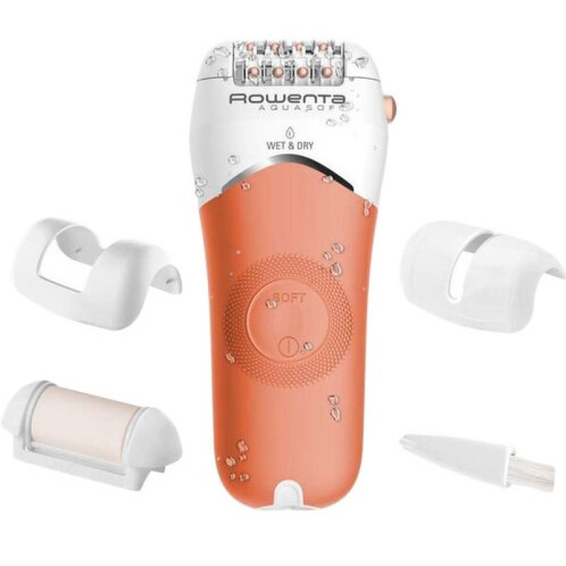 Видалення волосся не повинно бути неприємним і викликати роздратування шкіри! Епілятор Aquasoft оснащений запатентованою* технологією проти роздратування Anti-Irritation - завдяки ексклюзивній м'якій поверхні насадки пристрій дбайливо видаляє волосся, не викликаючи роздратування. Додатковий дбайливий режим роботи на низькій швидкості забезпечує делікатнішу епіляцію. Епілятор Aquasoft ефективно видаляє навіть найкоротше волосся (0,5 мм), не ламаючи його, а завдяки елегантному, ергономічному і на 100% водонепроникному корпусу пристрій зручно тримати в руці та можна використовувати під водою. Унікальна технологія Skin Respect у вигляді масажних кульок знижує чутливість шкіри під час епіляції, а оптимальна швидкість обертання насадки дозволяє підвищити ефективність епіляції. У комплект входять відлущуюча насадка, аксесуари для епіляції на чутливих ділянках шкіри та для точнішого видалення волосся.