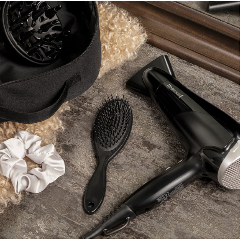 | Особливості | Петля для підвішування з інтегрованим місцем для зберігання шнура Гребінець і гумка для волосся Сумка для зберігання |