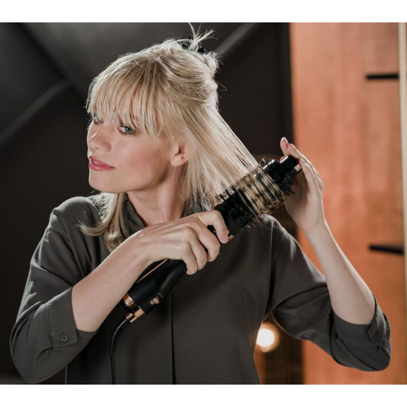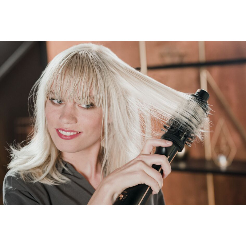 Фен-щітка Rowenta Ultimate Experience з обертовою насадкою повторює рухи стиліста під час укладки та дарує відчуття професійної турботи про волосся прямо у вас вдома. Унікальна функція Style Assist з автоматичним настроюванням візьме на себе весь процес укладки: створить об'єм від коренів до кінчиків, зробить волосся гладким, шовковистим і сяючим. Ергономічна фен-щітка 2 в 1 одночасно висушує волосся і створює бездоганну укладку, як у салоні краси. 3 насадки різного діаметра, створені за участю професійних стилістів, підходять для будь-якого типу волосся: тонкого та прямого, густого та неслухняного, а також для каре та чубчика. Подаруйте своєму волоссю якісний догляд, як у салоні краси.