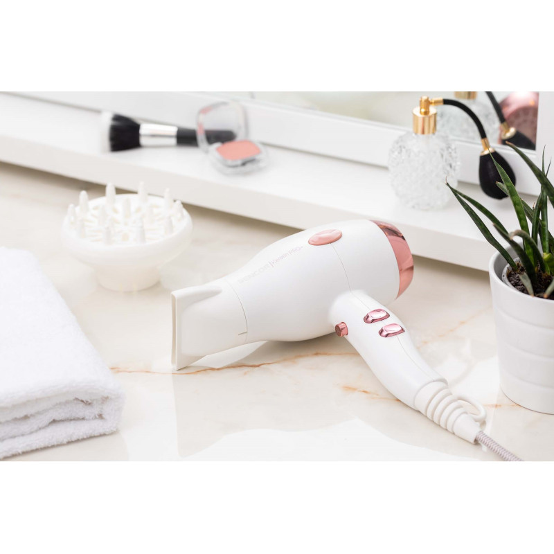 | Особливості | Компактні розміри з професійним двигуном змінного струму Функція Cool Shot для відмінної фіксації зачіски Функція TRUE IONIC Запобігає пошкодженню волосся Ергономічна ручка Знімна задня решітка для зручності чищення Підвісна петля |