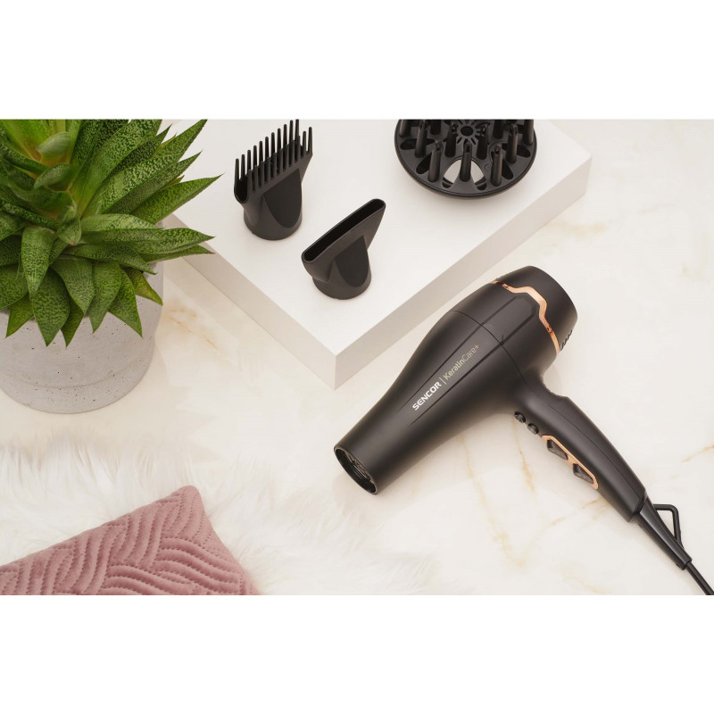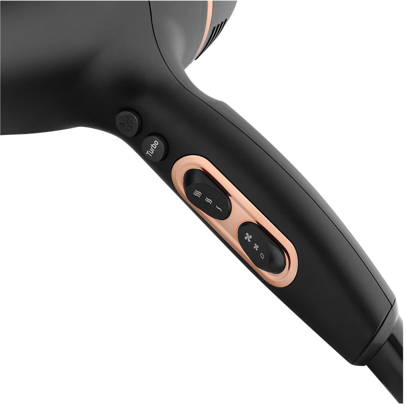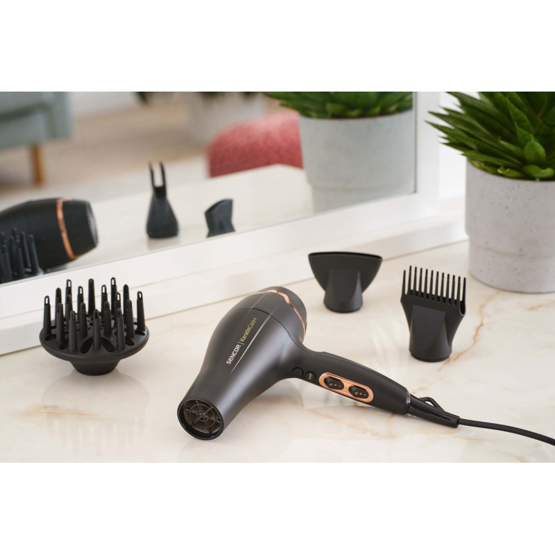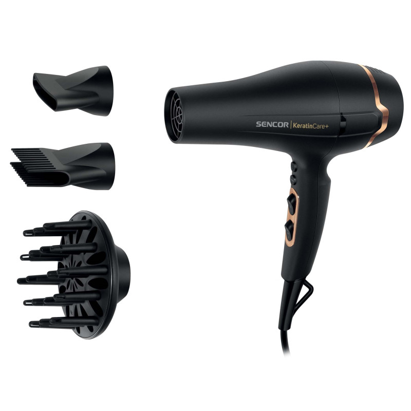 - Приладдя: Тонка конічна насадка, концентратор з гребінцем, об'ємний дифузор, дорожня сумка
