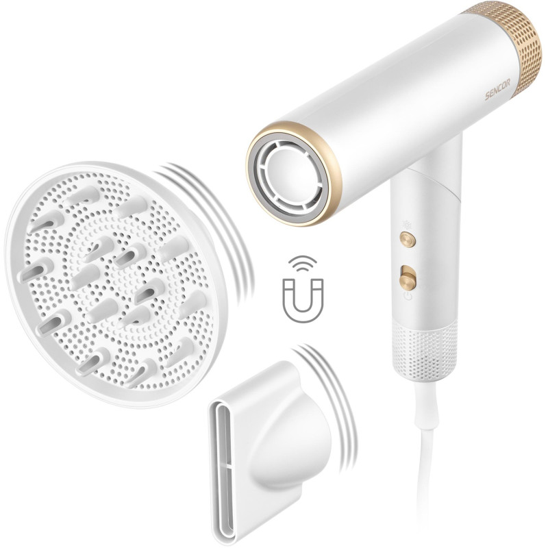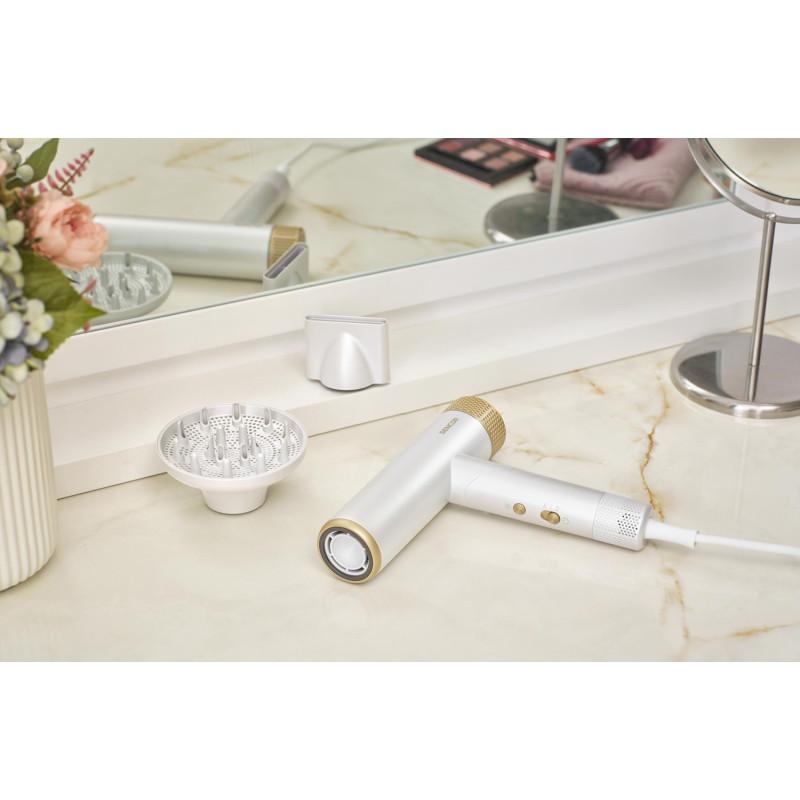 | Особливості | Високошвидкісний фен для волосся; Високошвидкісний професійний двигун BLDC; Максимальна швидкість: 110 000 об/хв; Холодний потік для зміцнення та фіксації зачіски; Циклічна зміна налаштувань гарячого та холодного повітря; Надзвичайно тихий; Ск |