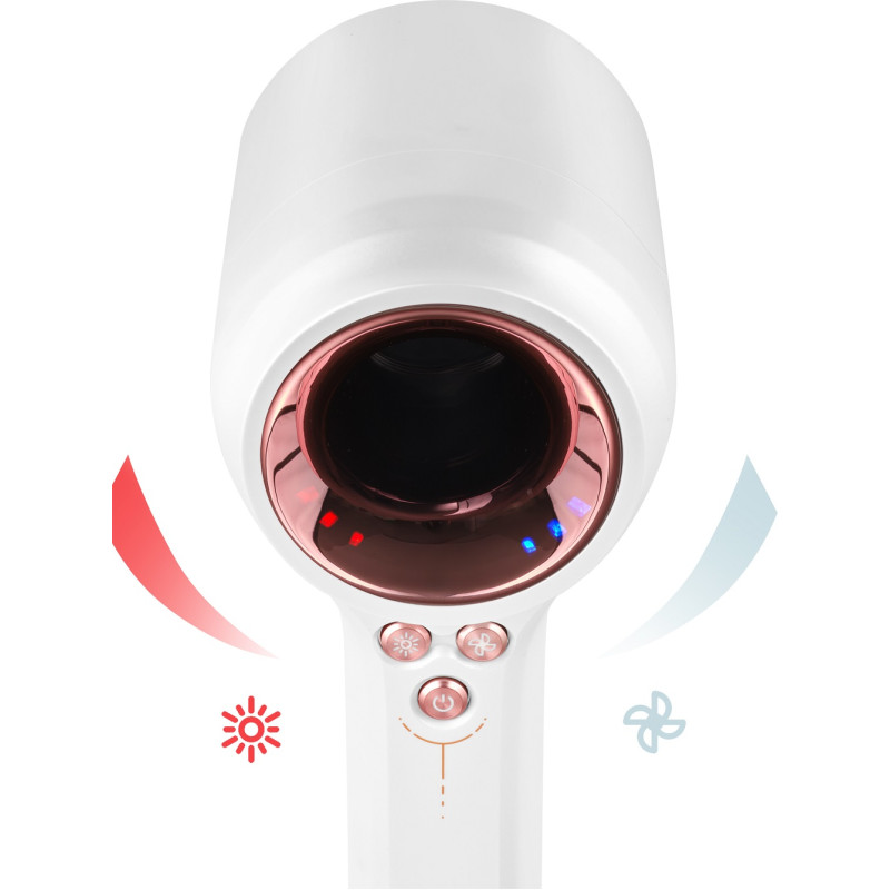 Високошвидкісний фен з мотором BLDC (Безщітковий двигун постійного струму). Представляємо революційну технологію для вашого комфорту. Цей мотор має набагато триваліший термін служби та набагато тихіший, ніж старі типи моторів. З неймовірною продуктивністю, завдяки швидкості до 110 000 обертів на хвилину, він може створювати потік повітря до 75 км/год.