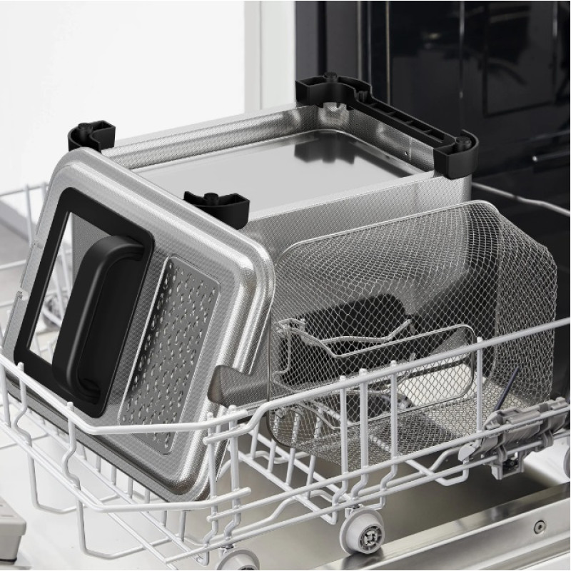 Проста у використанні й придатна до миття в посудомийній машині. Сітка залишається всередині чаші навіть під час смаження.