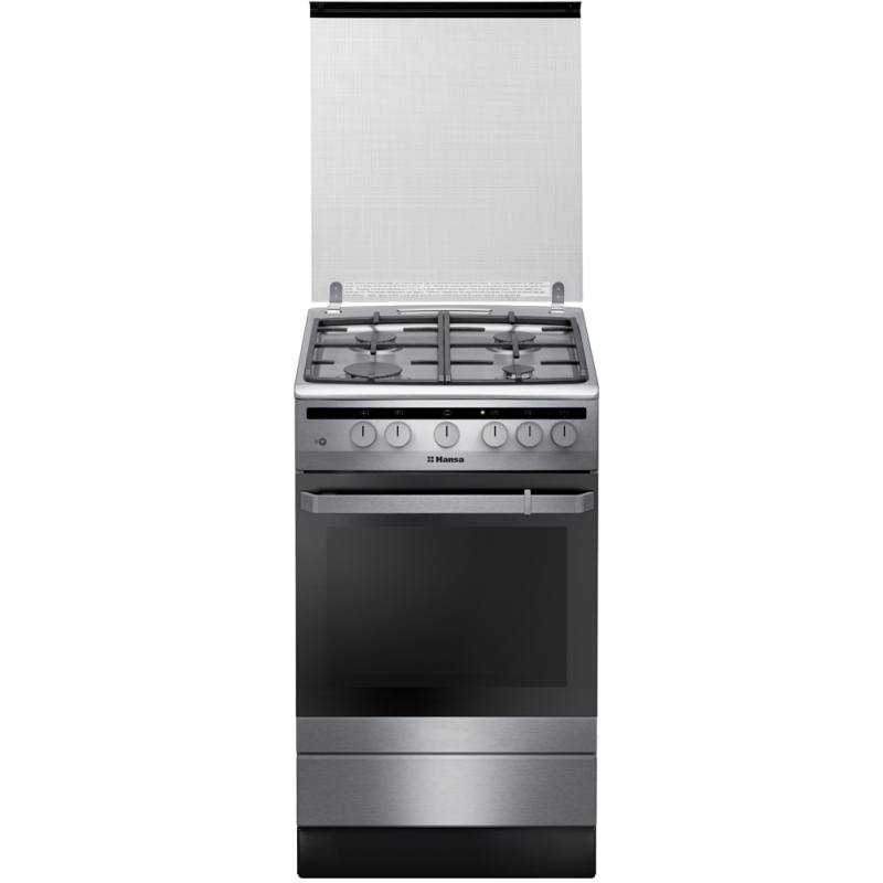Газова духовка об'ємом 60 літрів оснащена електричним грилем і вертелем, завдяки яким Ви зможете подавати на стіл кулінарні шедеври, приготовлені на грилі. HANSA FCGX53021 дозволить забути про складний і довгий процес очищення духової шафи. Каталітична система очистки забезпечує розкладання залишків їжі на воду і сажу при високій температурі. Для Вашої безпеки виробник оснастив плиту функцією газ-контролю, яка автоматично припиняє подачу газу в разі згасання полум'я.