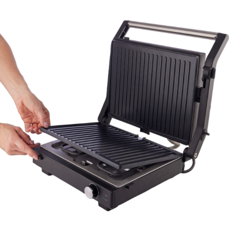 | Особливості | Контейнер для рідини Захисна защіпка Гумові ніжки Індикатор нагрівання Індикатор роботи Знімні пластини Піддон для збирання жиру Термостат Термоізольовані ручки |