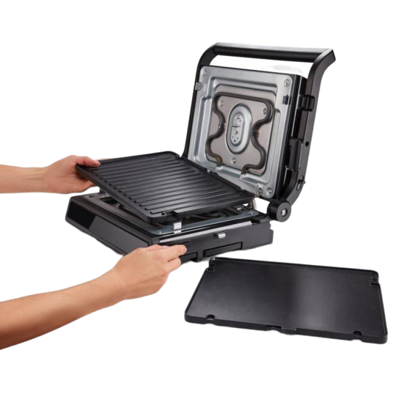 Двосторонні панелі дають змогу відчути справжню багатофункціональність гриля. Профільована поверхня підходить для приготування сосисок, риби, гарнірів, овочів, а також для випікання тортильї або паніні. Для приготування соковитих стейків і бургерів більше підійде гладка поверхня. Ви також можете використовувати цю поверхню для приготування яєчні або омлету. Панелі знімні та їх можна легко мити в посудомийній машині.