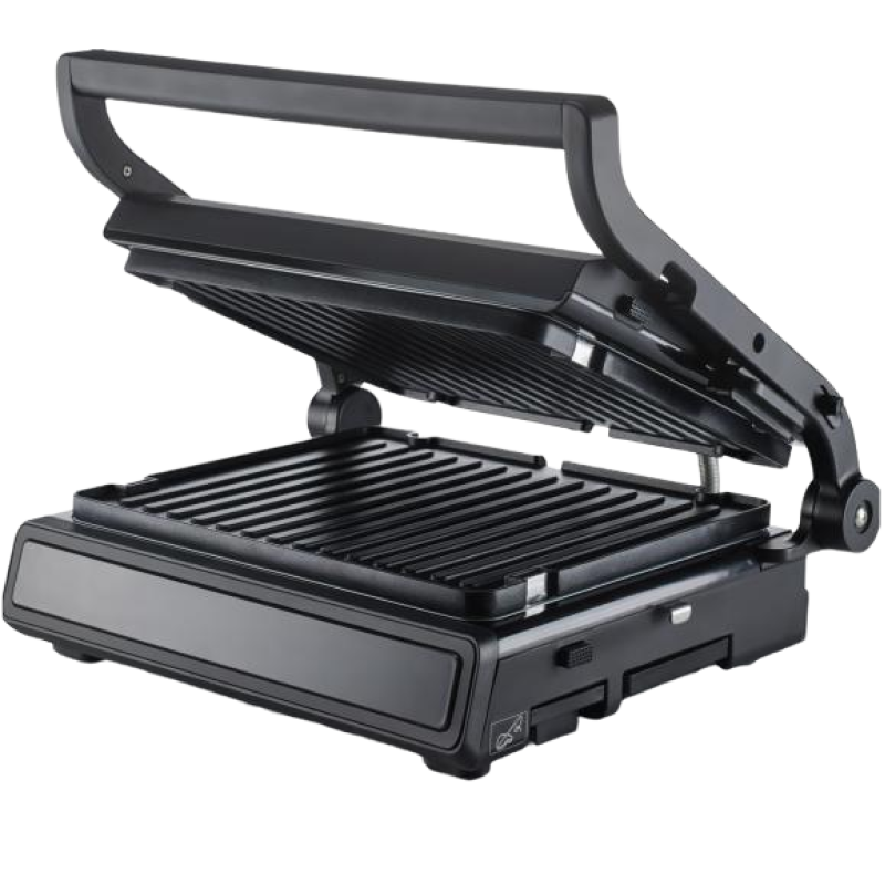 Завдяки запобіжному блокуванню ви можете без проблем переносити гриль або зберігати його у вертикальному положенні, щоб заощадити місце на кухні. Коли він вам знадобиться, просто візьміть його із собою — на вулицю, на відпочинок або просто залиште його на кухні й поставте в горизонтальне положення. Потім установіть бажану температуру та час і насолоджуйтеся чудовими стравами!