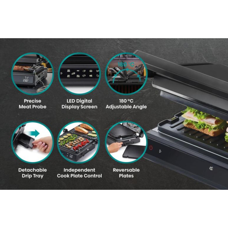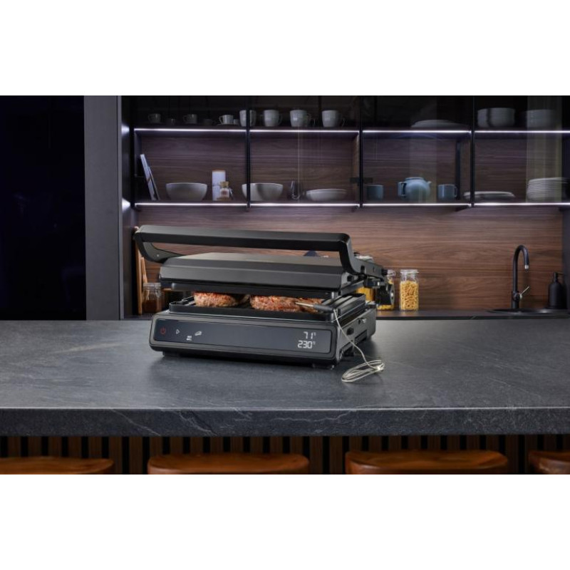 Якщо ви відчуваєте невпевненість під час приготування на грилі, тому що ви ніколи не знаєте, коли м’ясо правильно приготоване, цей гриль допоможе вам подолати труднощі. За допомогою датчика готовності м’яса, що входить до комплекту, ви можете просто виміряти температуру м’яса та переконатися, що страва відповідає вашим побажанням: добре просмажена, середньої готовності, середньо просмажена з кров’ю або майже повністю просмажена.