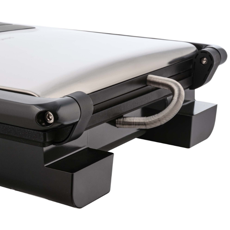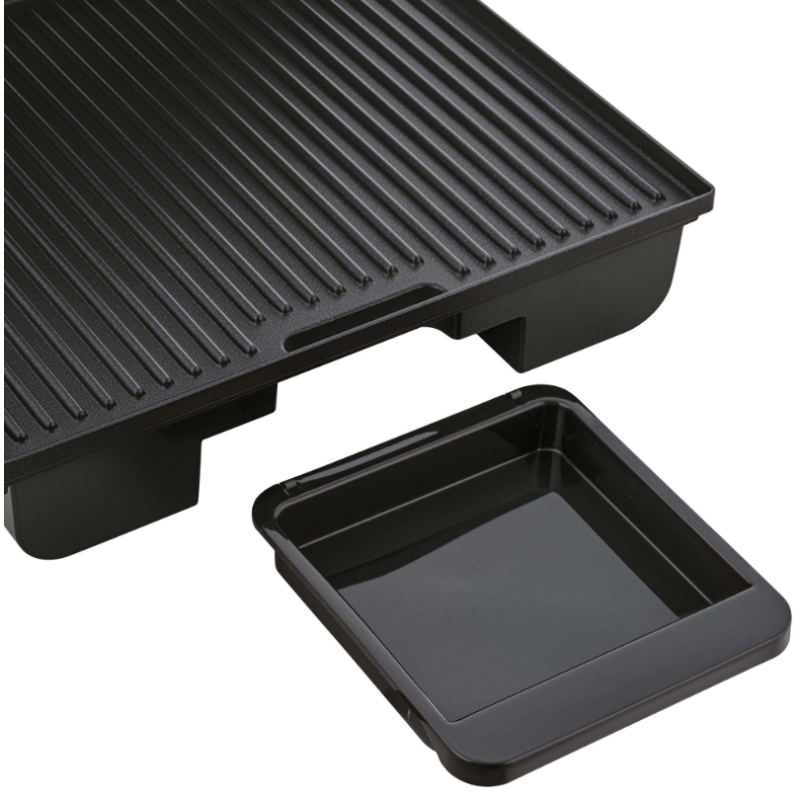 | Особливості | Знімний лоток для збирання олії Можливість зберігання у вертикальному положенні Корпус гриля CoolTouch, термоізольована ручка Плаваюча верхня кришка |