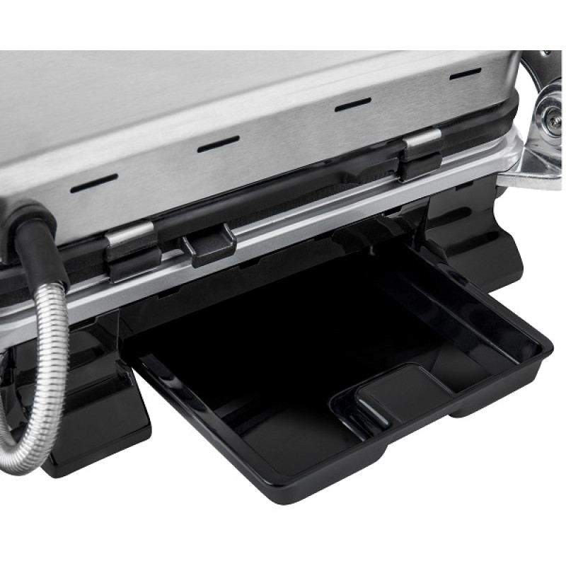 | Особливості | Програми: заморожені продукти, бекон, курка, ковбаса, стейк, риба, гамбургер, ручна Можливість зберігання у вертикальному положенні Нековзні ніжки Ніша для зберігання шнура живлення Знімний лоток для збору олії Окремі індикатори роботи та нагріву Ру |