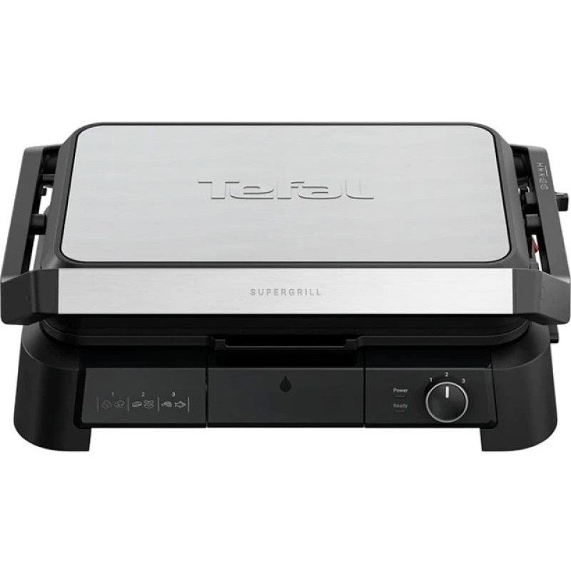 Відкрийте для себе Tefal SuperGrill 3in1 XL — універсальний гриль 3 в 1 із режимами гриля, барбекю та духовки! Використовуйте його як контактний гриль для овочів, м’яса та сендвічів, розкрийте на 180°, щоб перетворити SuperGrill на справжнє барбекю, або оберіть режим духовки для запікання без притискання та розігрівання готових страв. Завдяки регульованому термостату ви зможете встановити ідеальну температуру для будь-яких інгредієнтів — м’яса, риби, овочів, сендвічів і багато іншого. Завдяки збільшеній площі приготування гриль підходить для приготування до 8 порцій — і ця площа подвоюється в режимі барбекю!