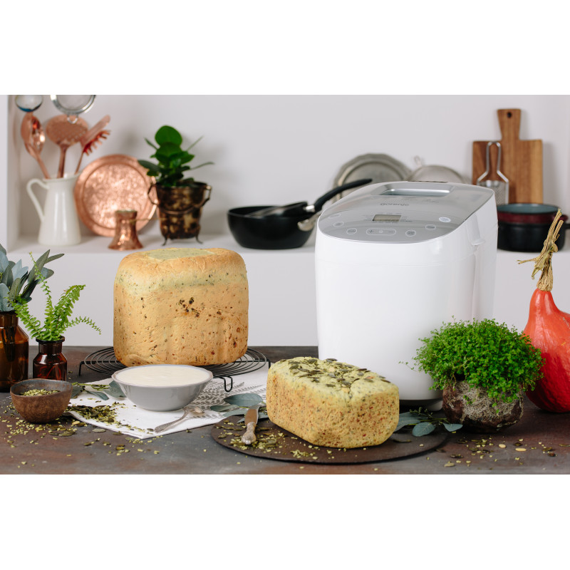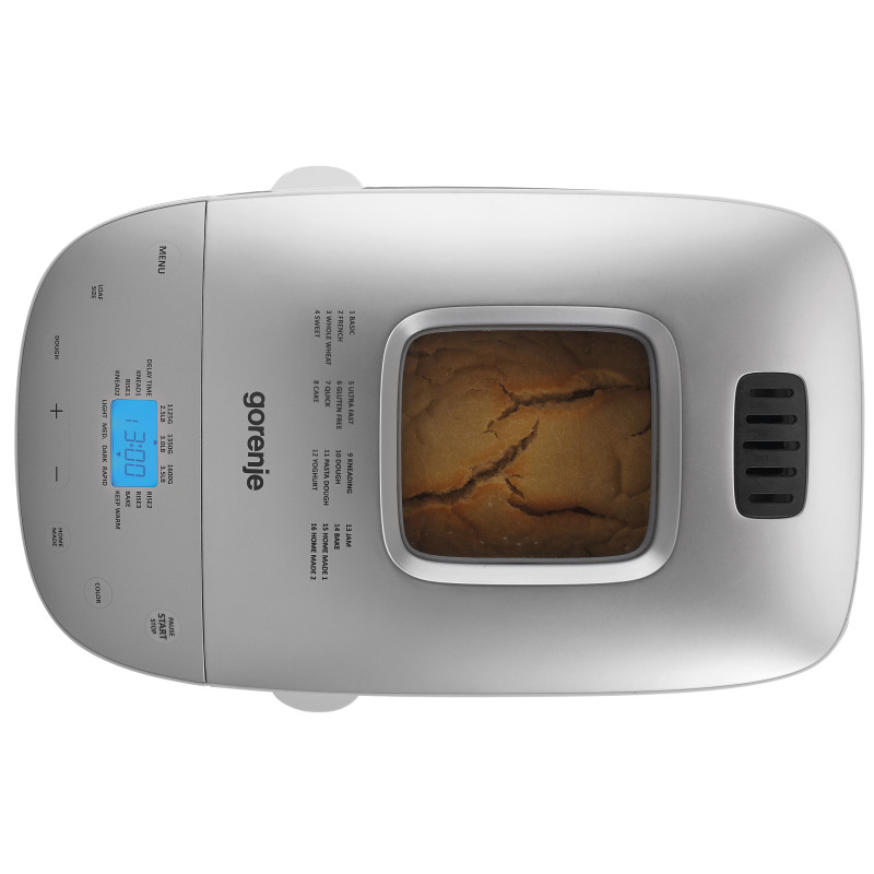 | Програми приготування | Пшеничний хліб Французький хліб Швидка випічка Тісто для пельменів Тісто для піцци Йогурт Джем Цільнозерновий хліб Тісто Кекс Солодка випічка Безглютеновий хліб |