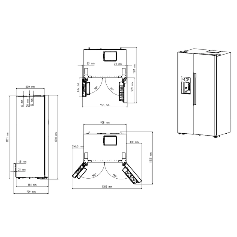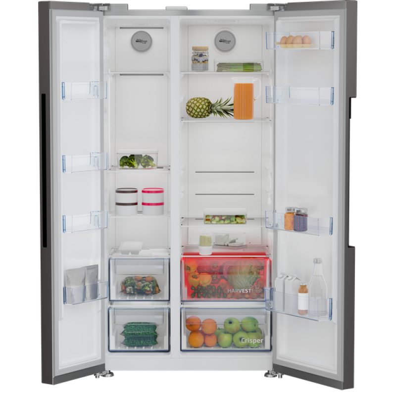 Холодильник SBS Neo Tools 179×91×71 см — місткий двокамерний Side-by-Side з об’ємом 558 л (368 л холодильна + 190 л морозильна). Технологія No Frost в обох камерах — без інею та ручного розморожування. Сенсорний дисплей на дверях, режими Super Cool / Super Freeze / Holiday. Стильний дизайн у кольорі нержавіюча сталь, LED-освітлення, широкі полиці та великі ящики. Ідеальний вибір для великої родини та любителів запасливих закупів.